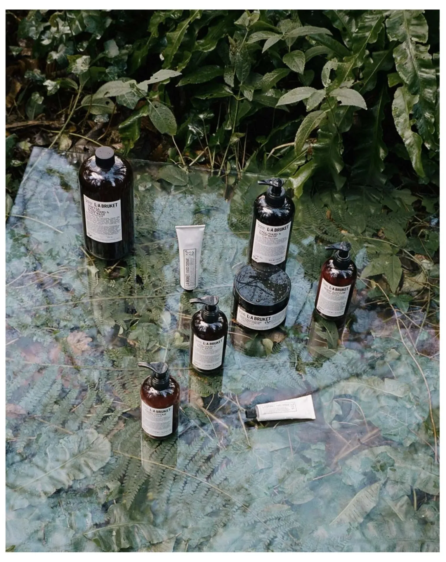 Beurre de karité, Huile de coco, Huile essentielle de pamplemousse, et Huile essentielle d’épicéa.
