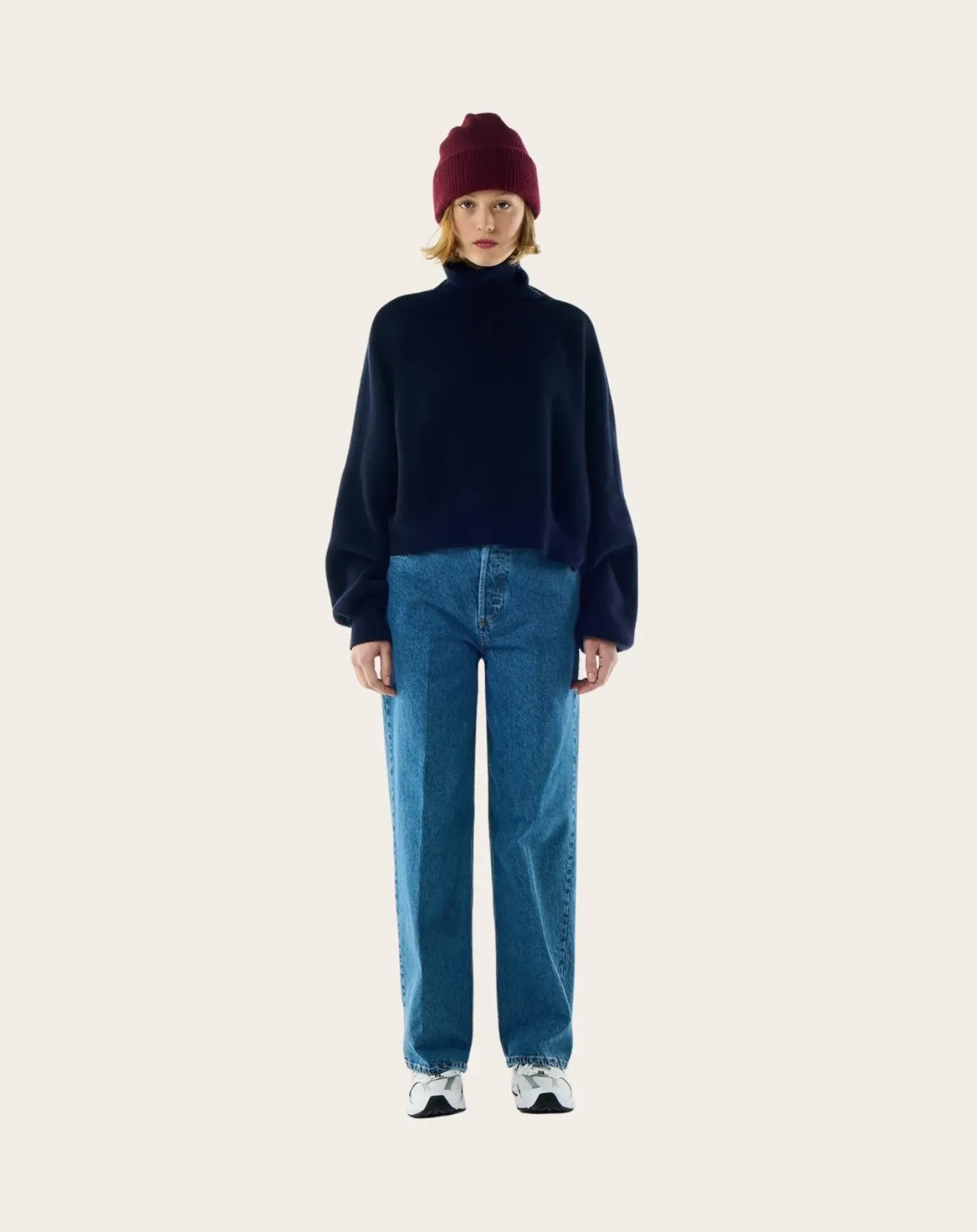 - – Pull en 100% laine merinos- Coupe oversize- Col roulé- Manches longues