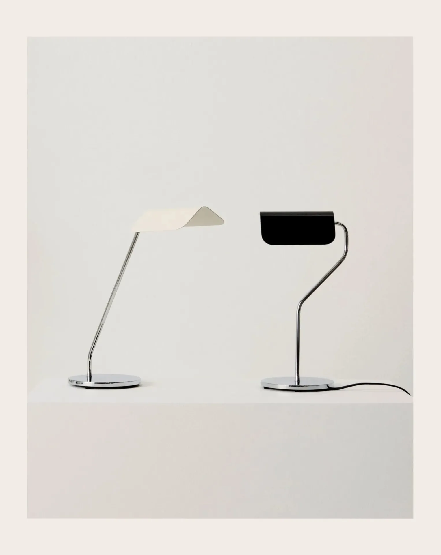 Cette série de lampes s’inspire de la fameuse Banker’s Light. Le designer leur donne ici une touche contemporaine avec des abat-jour en forme de toits pointus et une base chromée minimaliste.