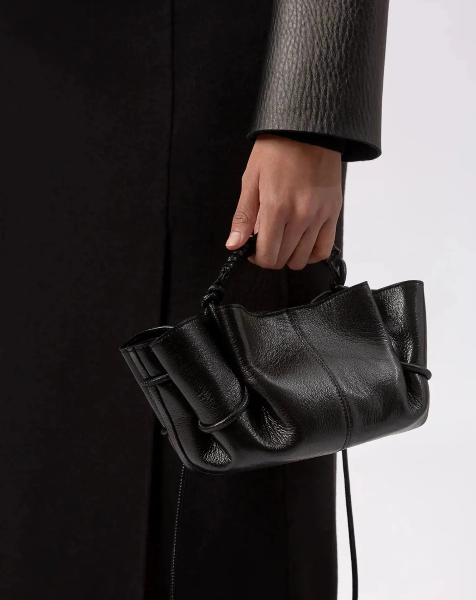 - Petit sac à main/corps plissé en cuir d’agneau souple et brillant