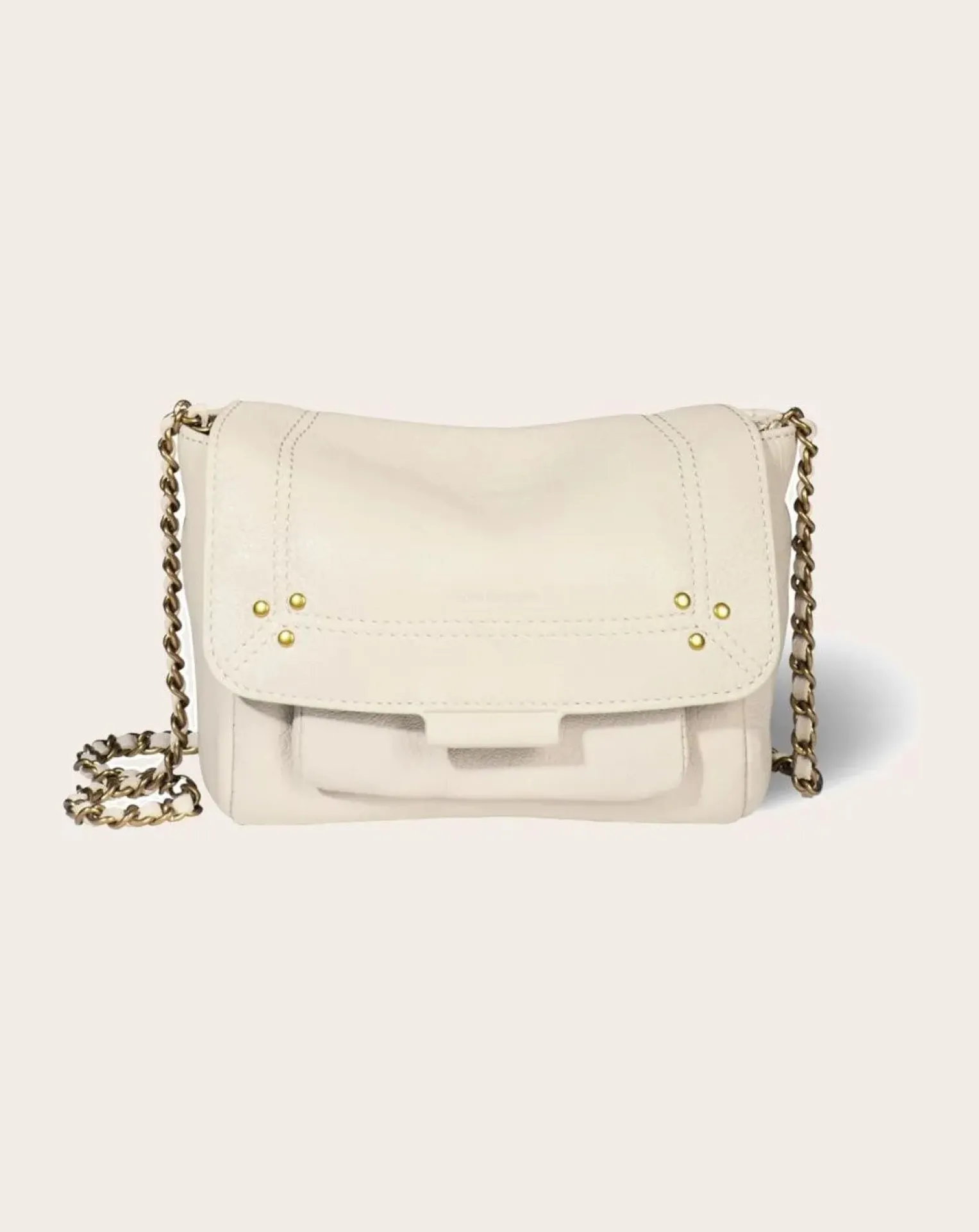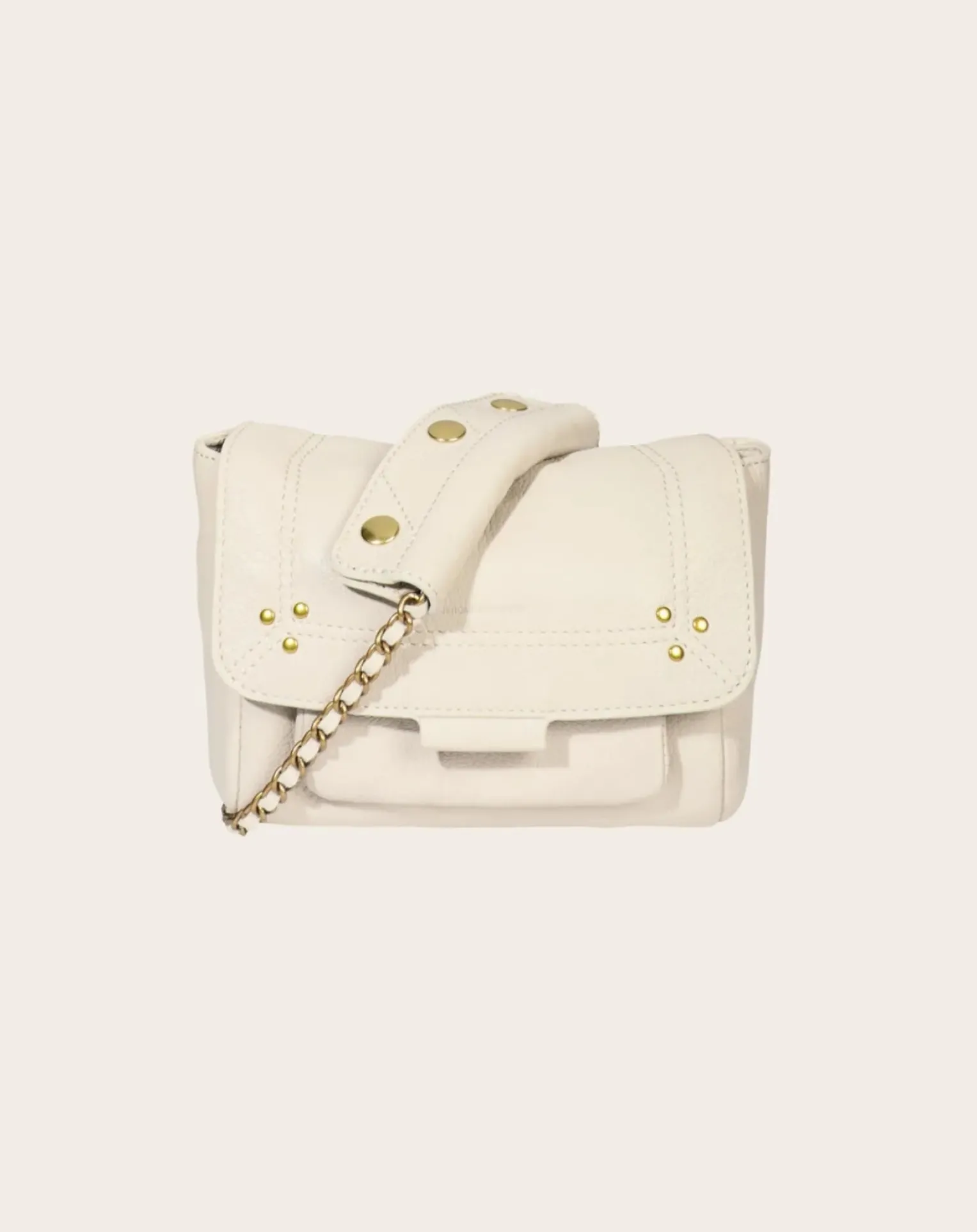 - Mini sac en cuir, porté épaule ou croisé. Bandoulière chaîne et cuir, amovible et ajustable. Rabat avec fermeture aimantée.
