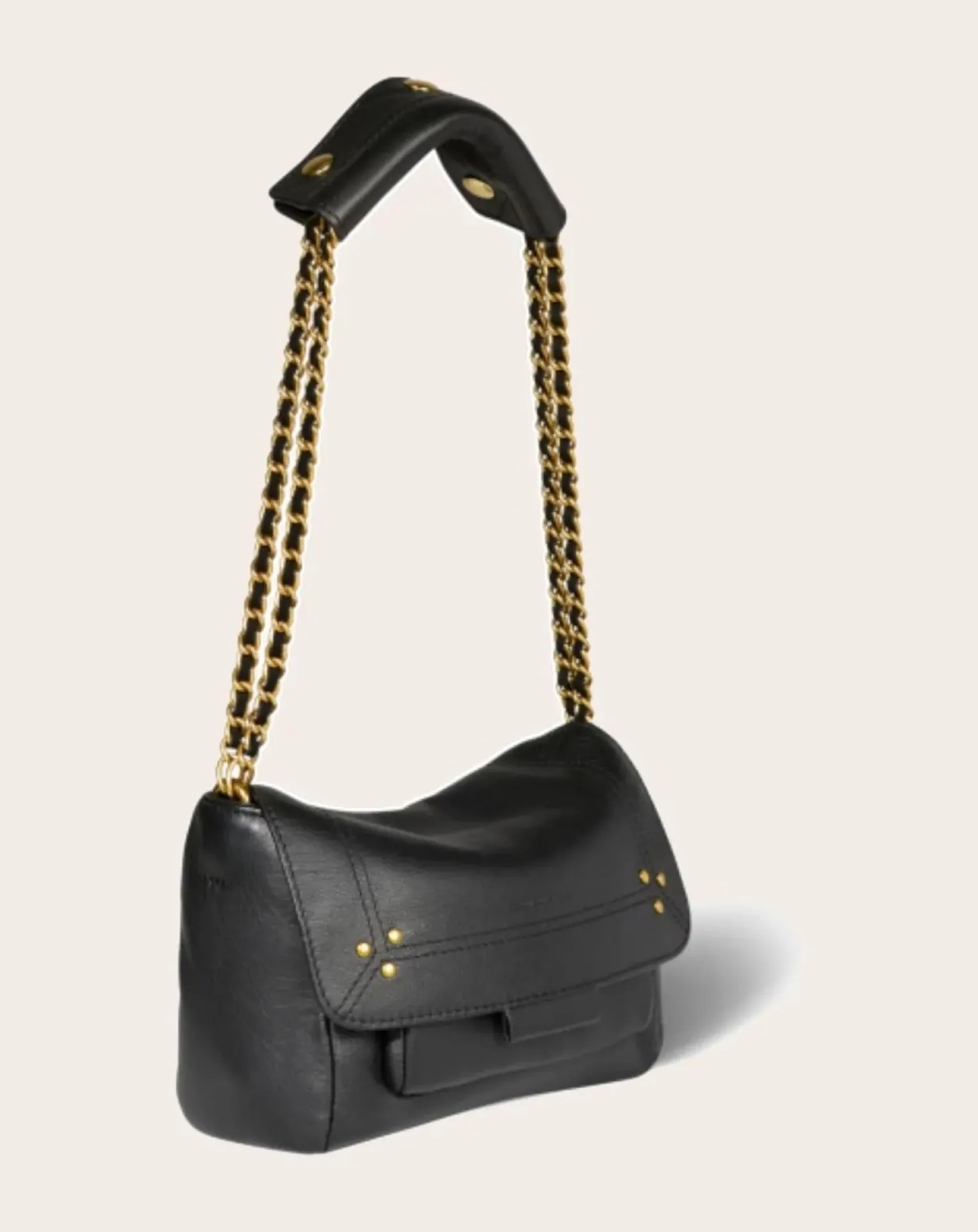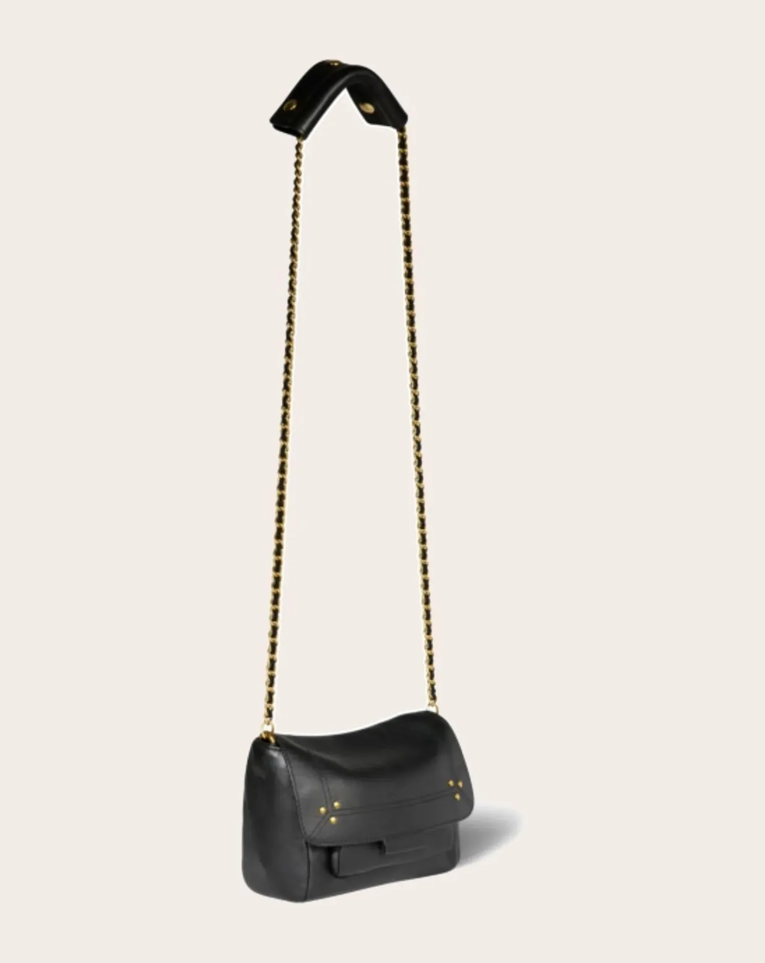- Mini sac en cuir, porté épaule ou croisé. Bandoulière chaîne et cuir, amovible et ajustable. Rabat avec fermeture aimantée.