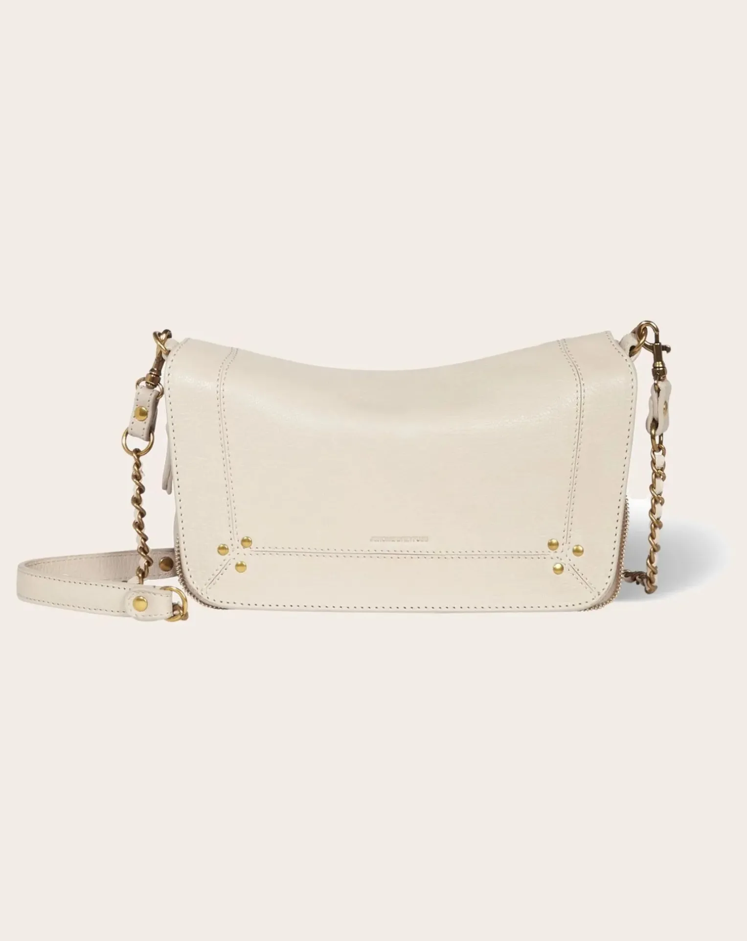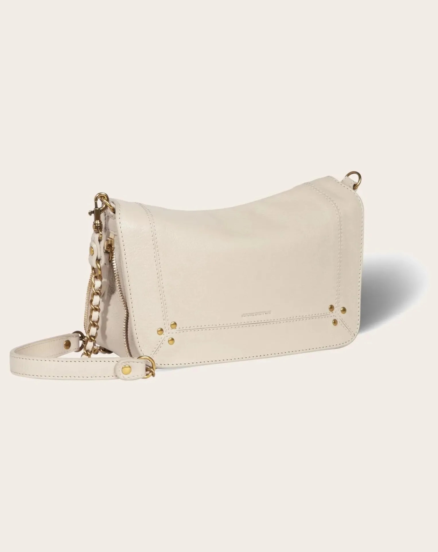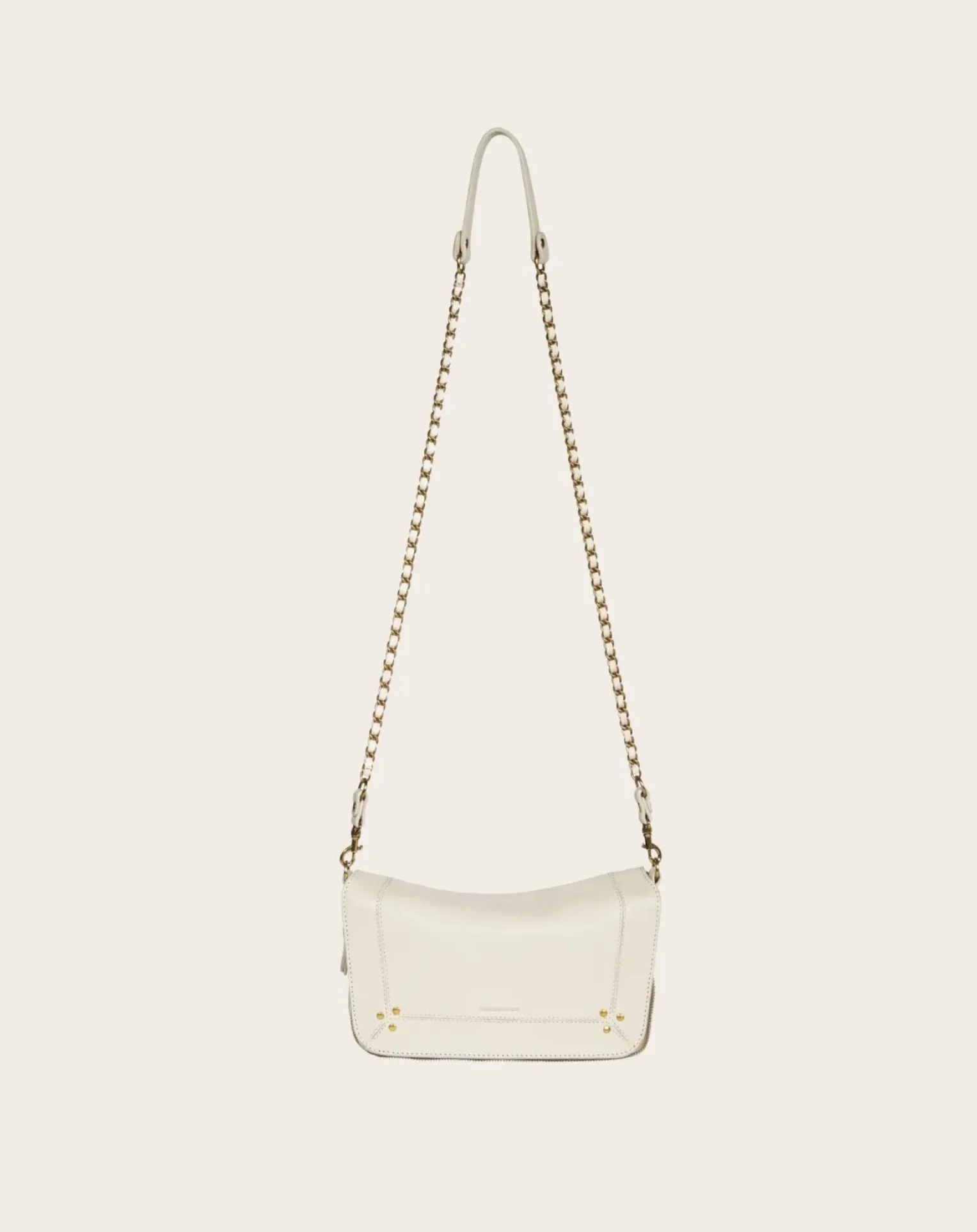 - Une bandoulière amovible en chaîne tressée de cuir mesurant 105 cm. Fermeture par un rabat en cuir aimanté. Sac organisé en un grand compartiment. Un miroir et un lien porte-clés à l’intérieur du sac.