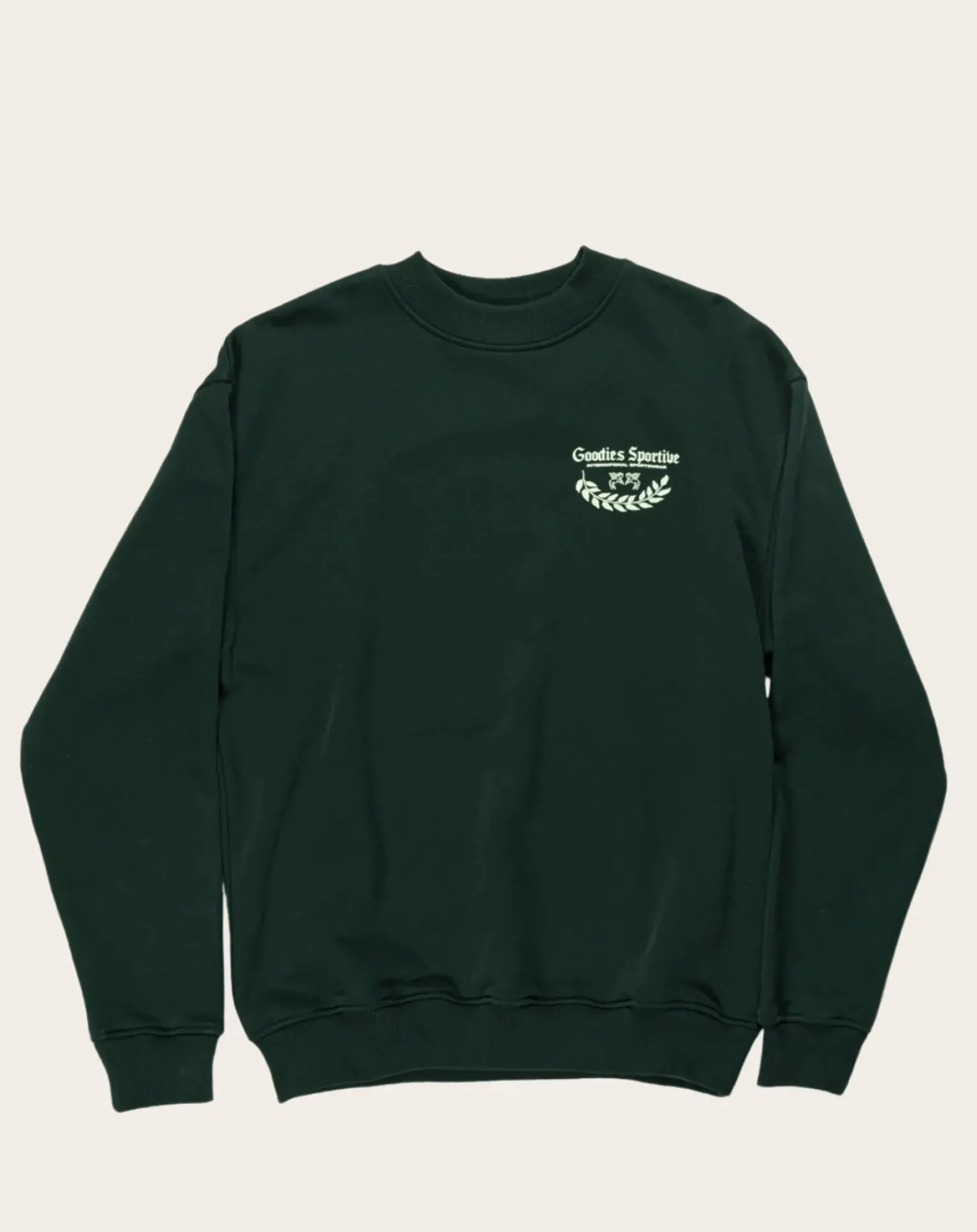 - Sweat col rond vert, coupe carrée. Logo à l’avant et à l’arrière, col rond.