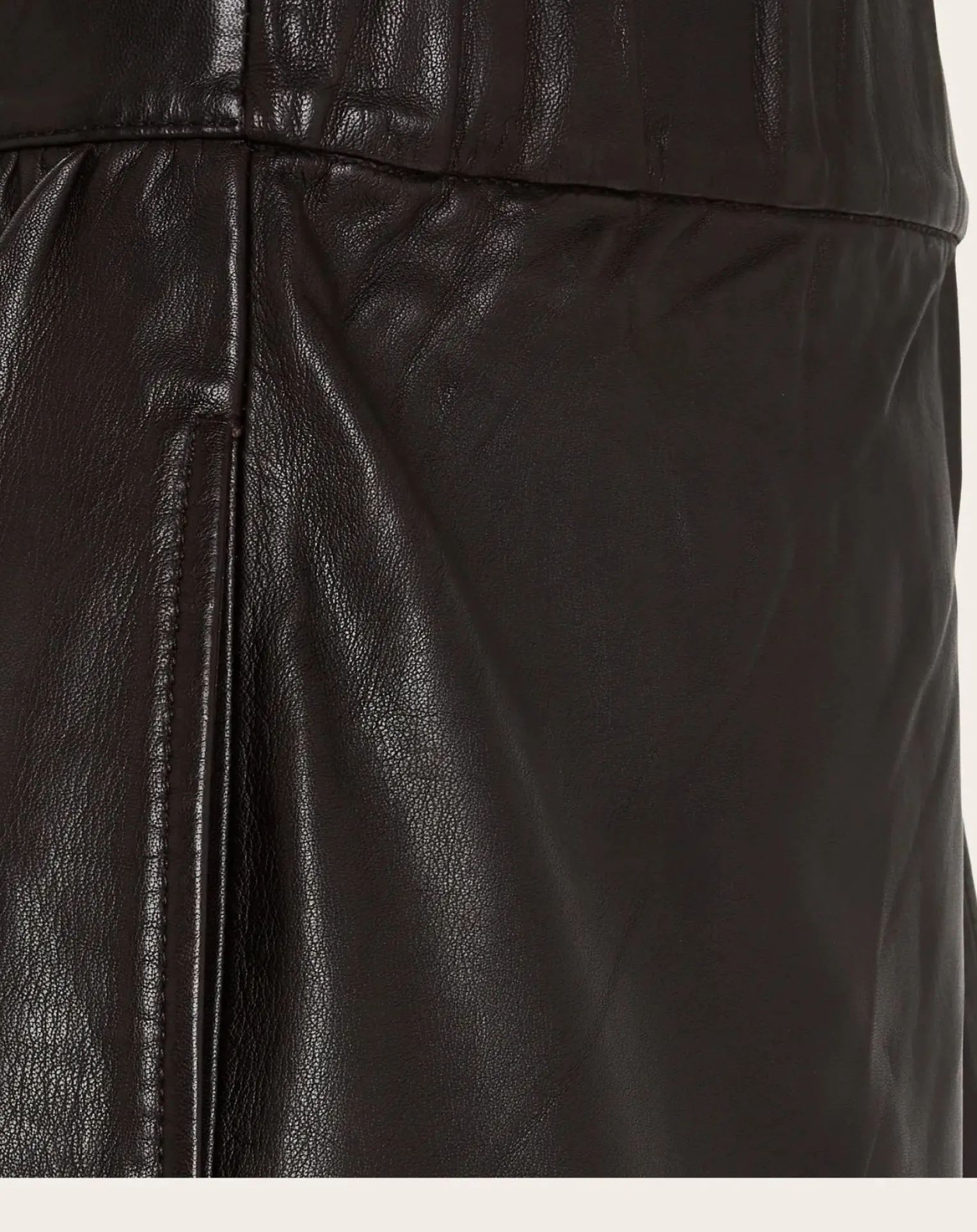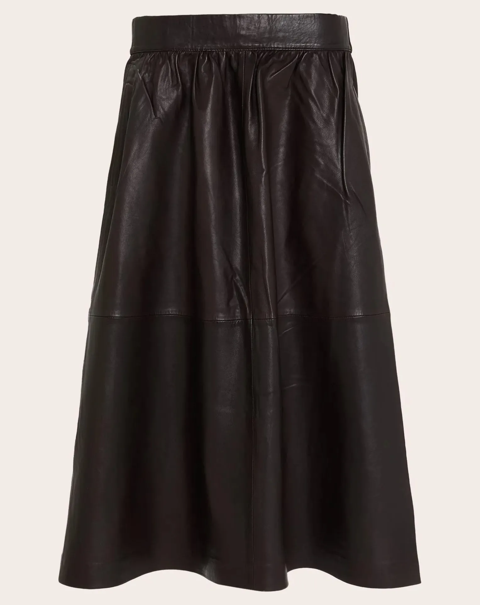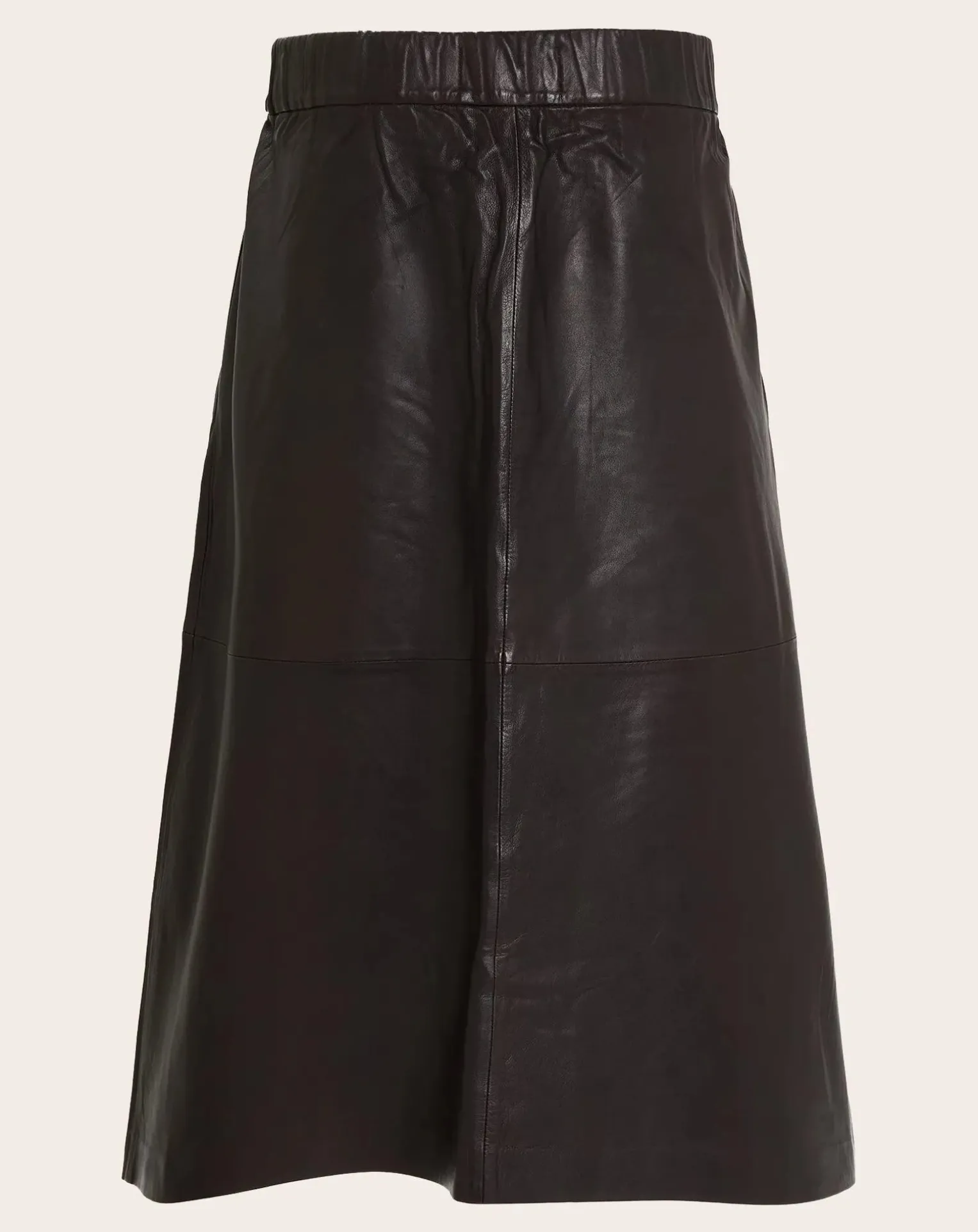 - « – Jupe midi en cuir- Ceinture élastiquée au dos- Poches cotées