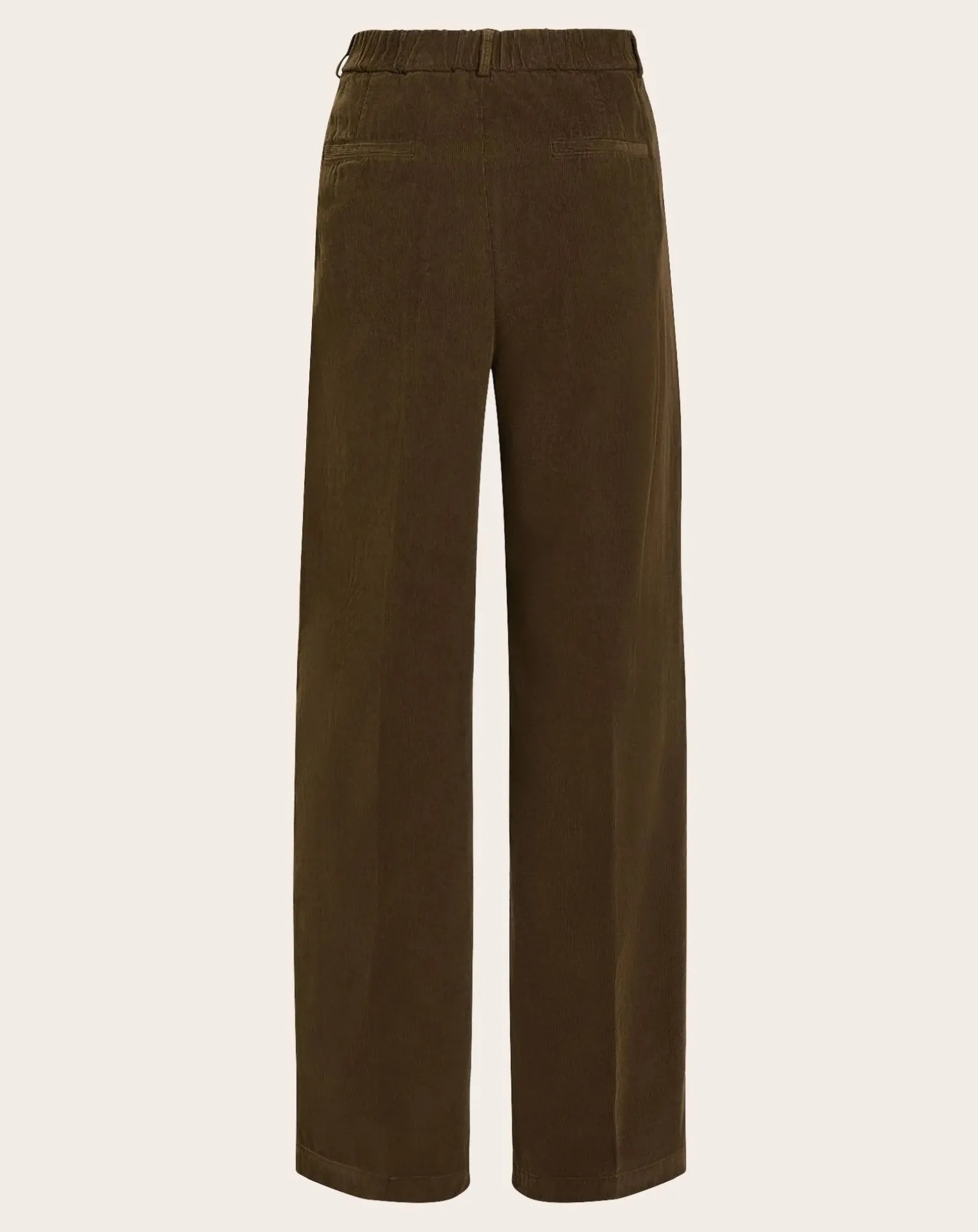 - L’attitude décontractée et le style classique se rejoignent dans le pantalon en velours côtelé de coton. Le pli glisse doucement le long de la jambe, accompagnant harmonieusement les mouvements. La douceur du velours rend la texture fluide, pour une coupe très agréable à porter.