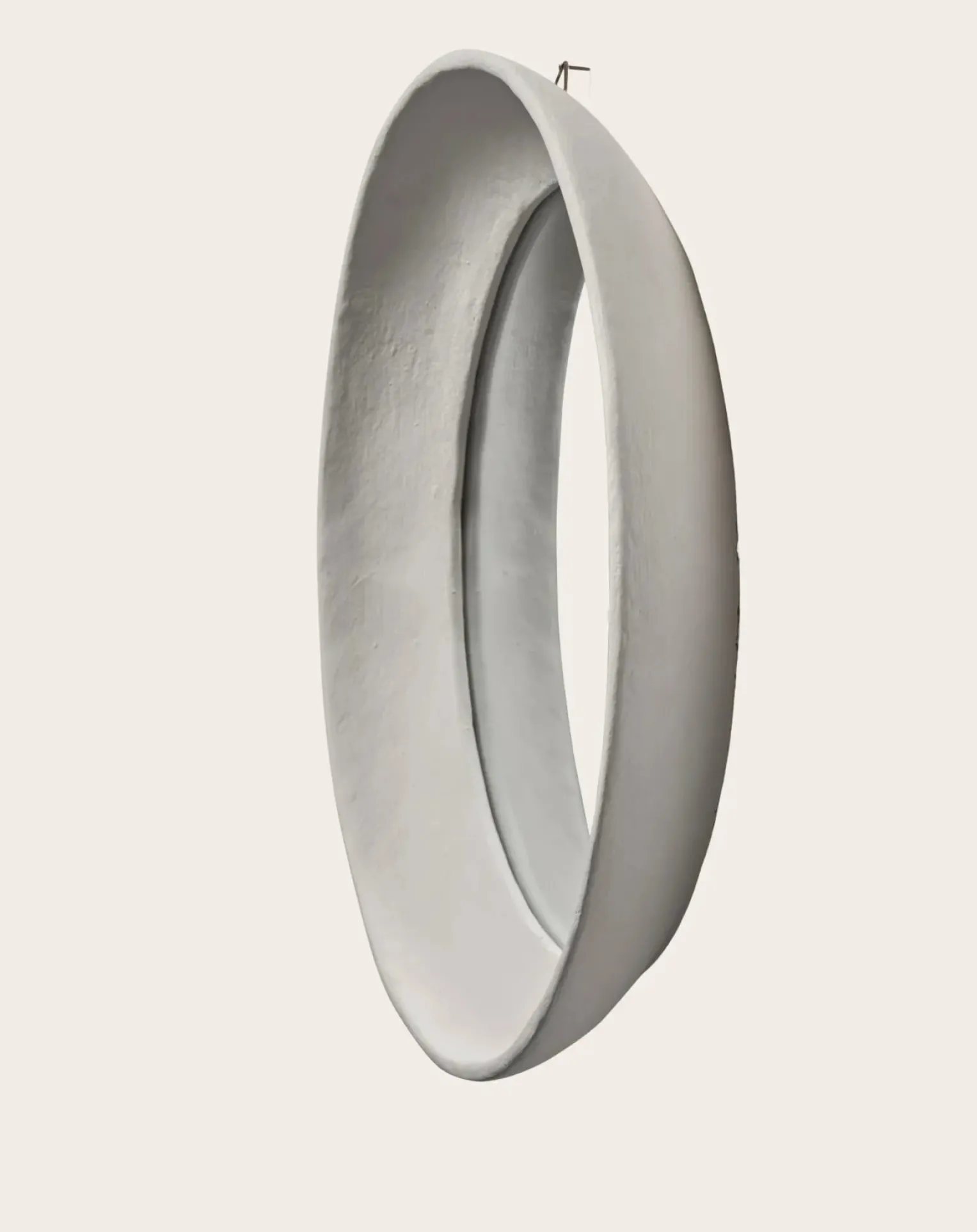 Les premiers objets décoratifs en papier mâché de Marie Michielssen remontent à 2018, et le succès de la collection a contribué à faire connaître ce matériau unique à l’échelle mondiale. Idéal pour divers espaces, du cadre intime de la chambre à coucher au hall d’entrée, le miroir Earth ajoute une touche élégante au rituel quotidien de se regarder avant de partir.