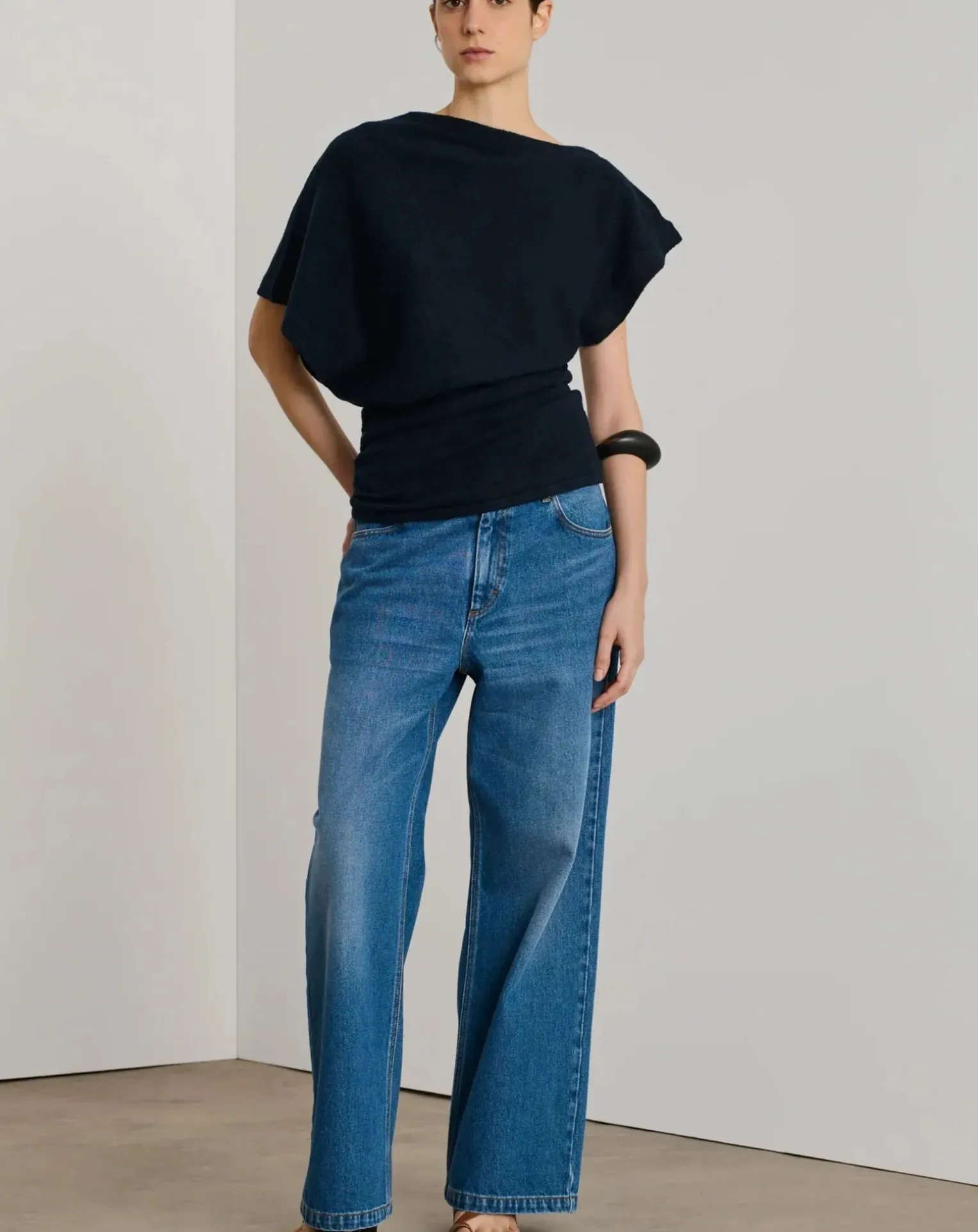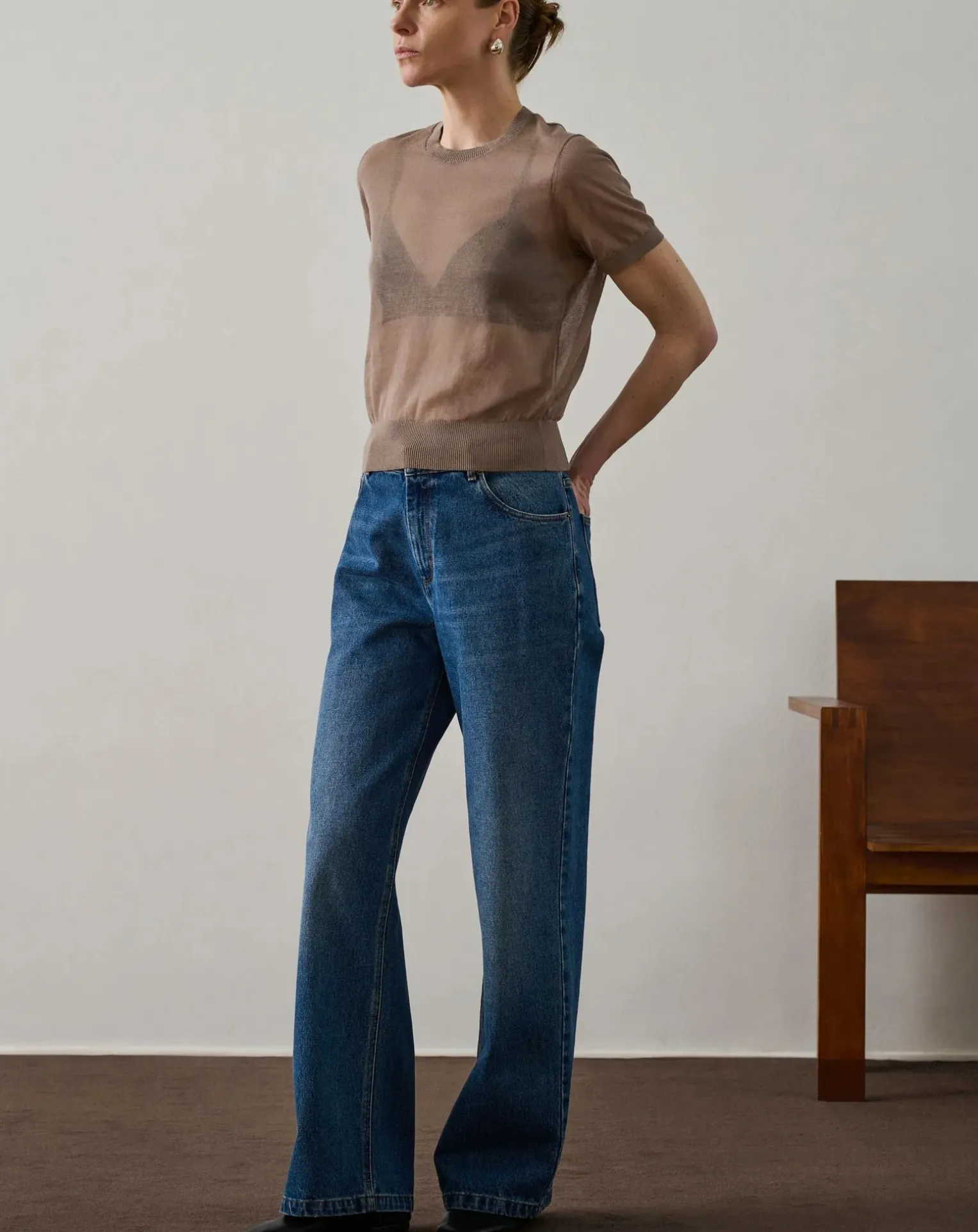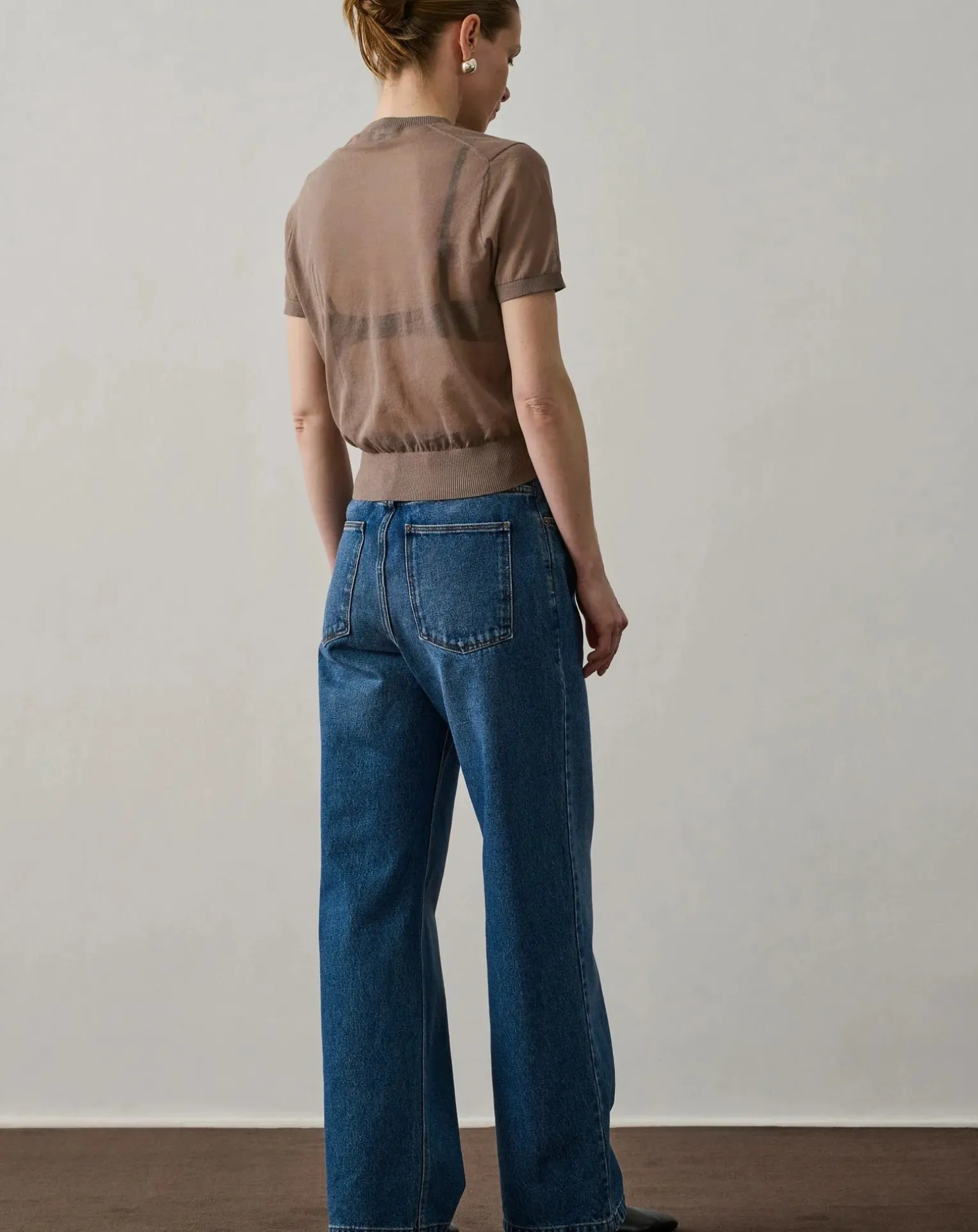 - – Jean droit brut- Coupe droite, taille mi-haute- Jambe longues- Bouton denim et braguette zipée- Deux poches italiennes devant et deux poches plaquées au dos- Patch en cuir au dos- Coton