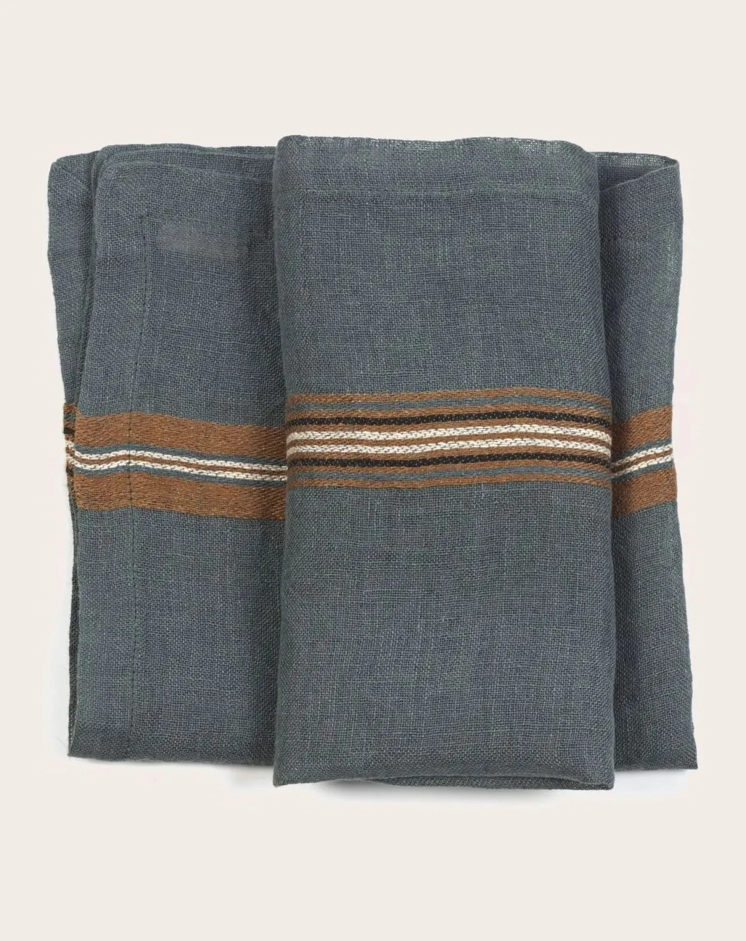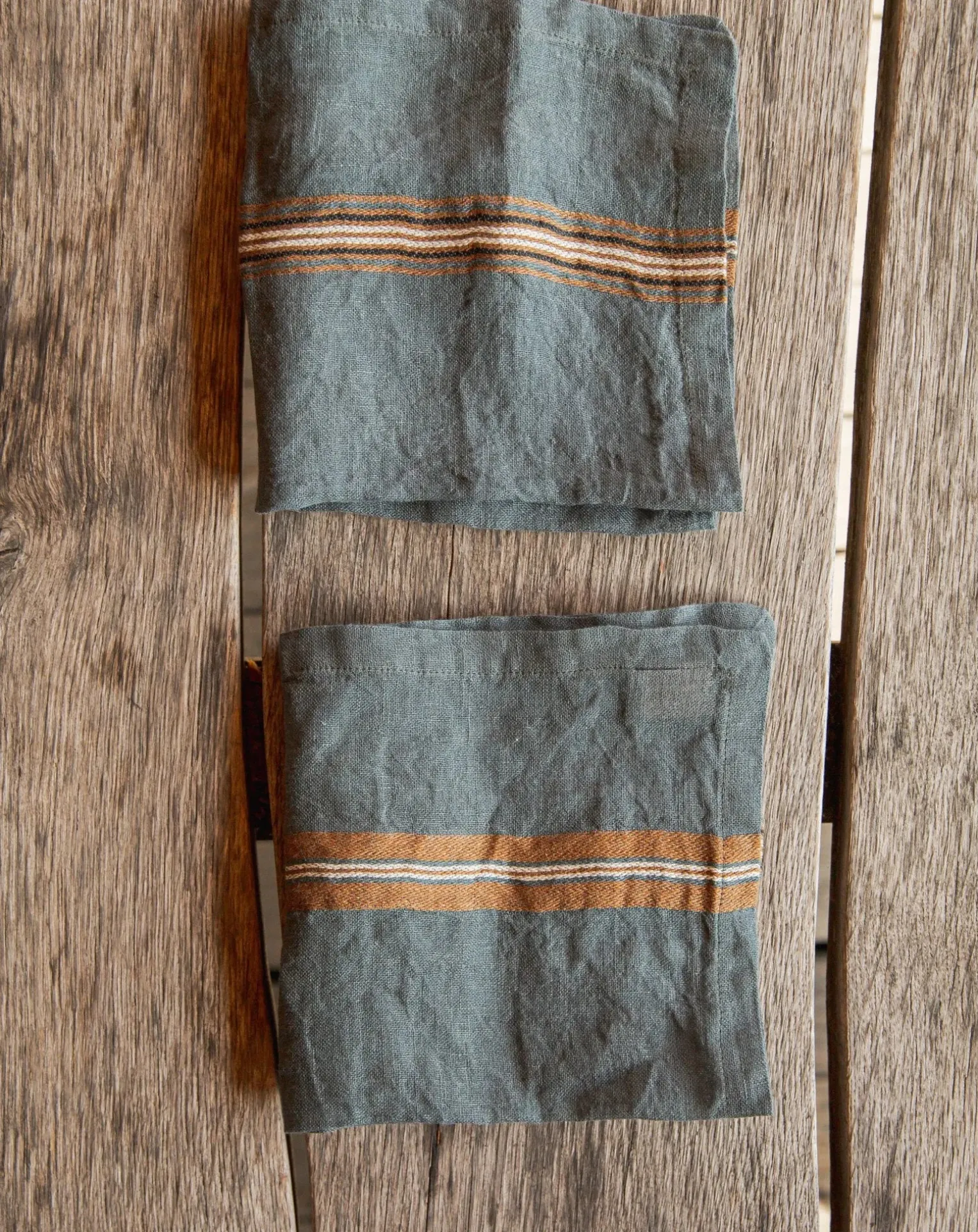Kea, île des Cyclades, donne son nom à cette serviette de table au fond vert River, éclairci par deux rayures distinctes.