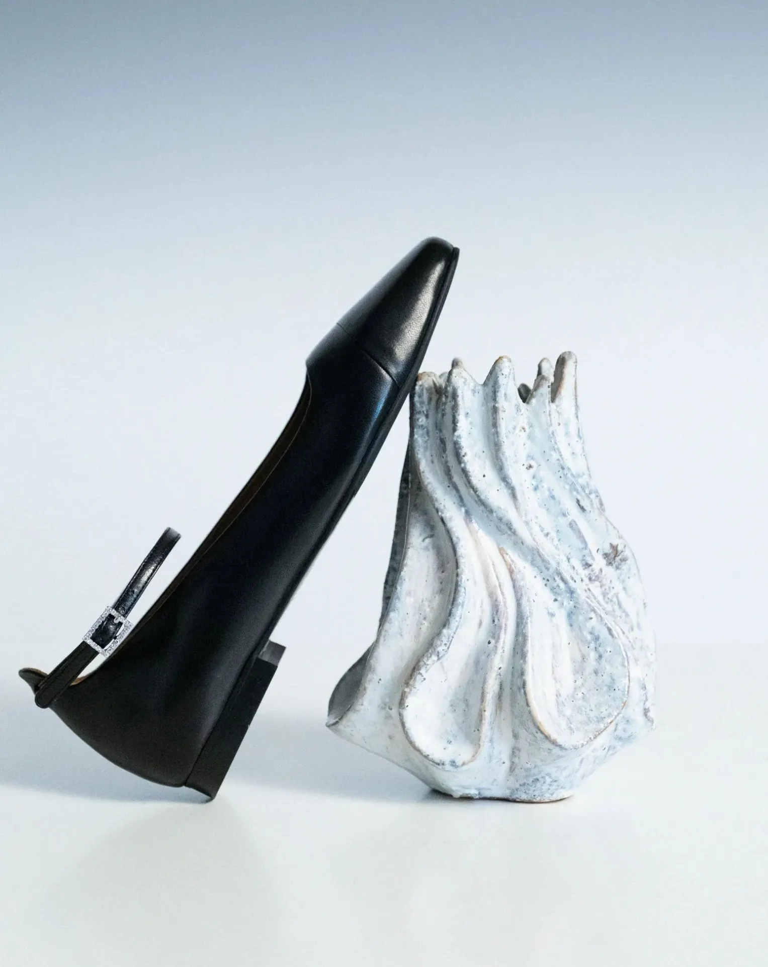 - – dessus : cuir souple noir – bout carré – bracelet de cheville en cuir noir avec boucle en strass (réglable et amovible) – intérieur : doublure souple en cuir camel avec semelle intérieure en mousse pour plus de confort – semelle : semelle antidérapante – cuir avec devant en caoutchouc – talon : 1,5cm – sac à poussière et boîte