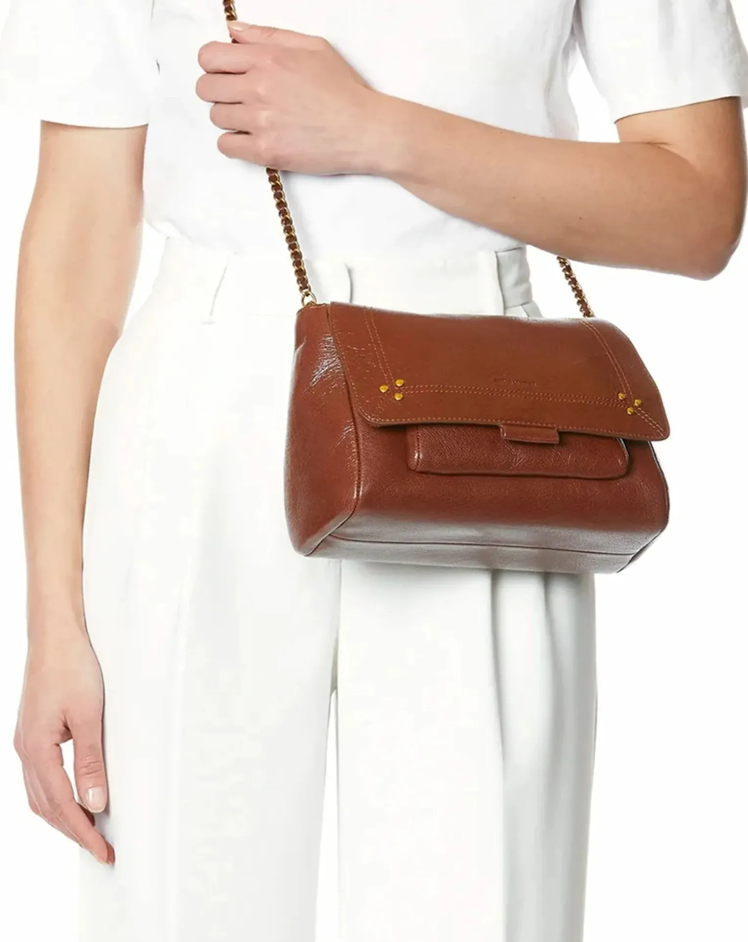 - Sac besace, porté épaule ou croisé. Bandoulière chaîne et cuir, amovible et ajustable. Rabat avec fermeture aimantée.