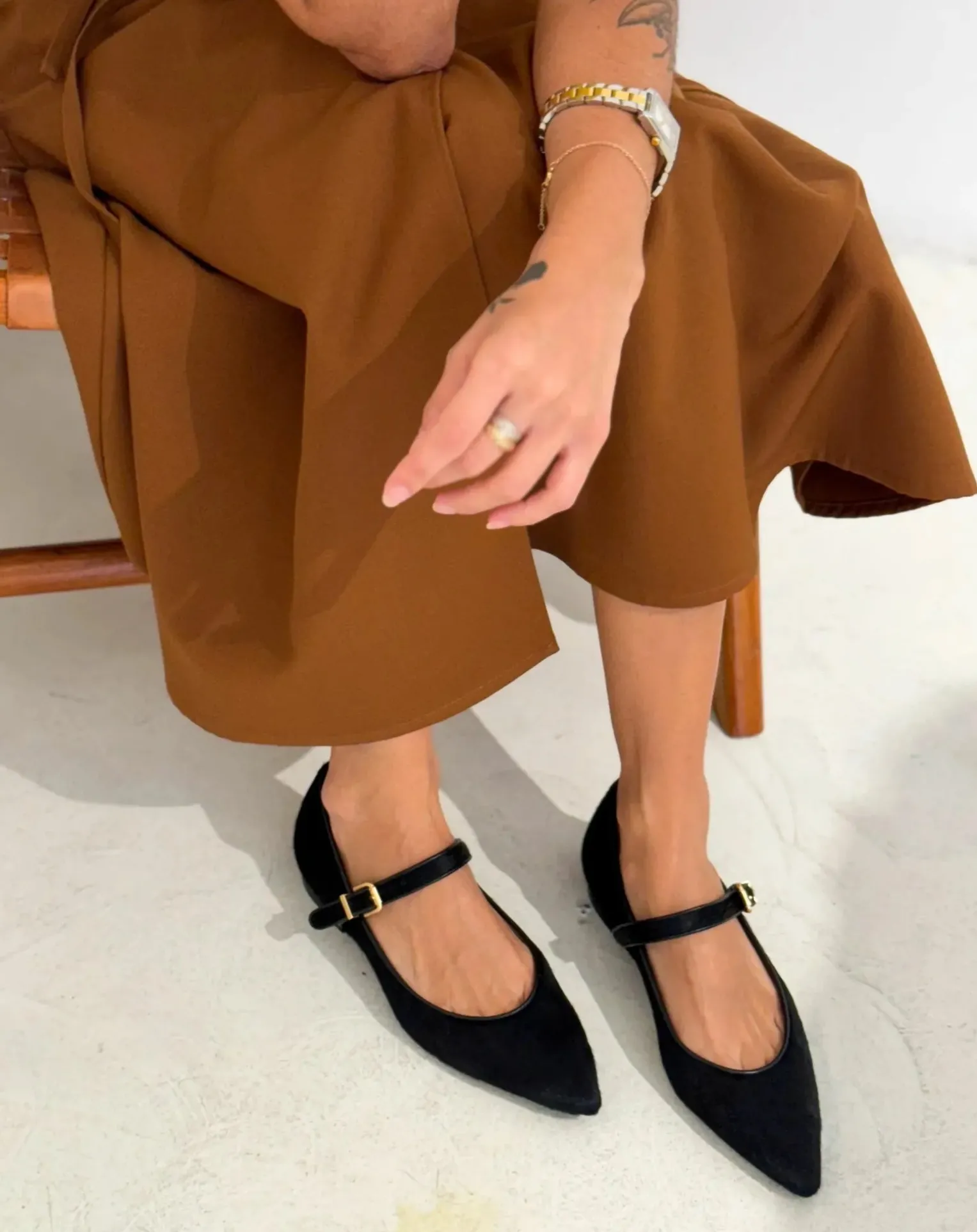 - Les Our Mary Jane allient l’élégance du style pointu à un cuir exquis en poils de veau noir. Un style polyvalent qui va avec tout ce que vous avez dans votre garde-robe.