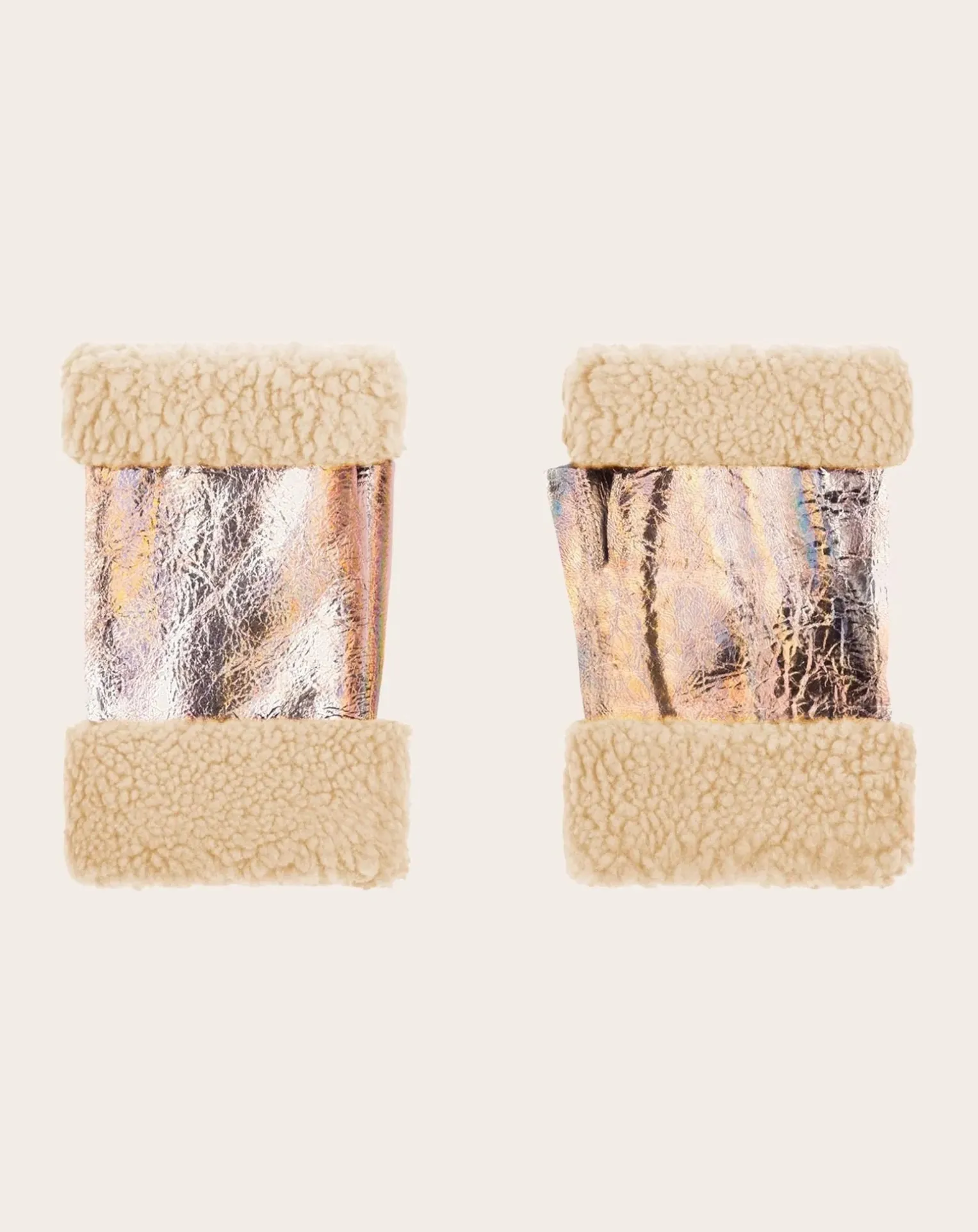 - moufles en peau lainée, poignet laine, ajustement par bouton pression en métal, couture et finition ton sur ton