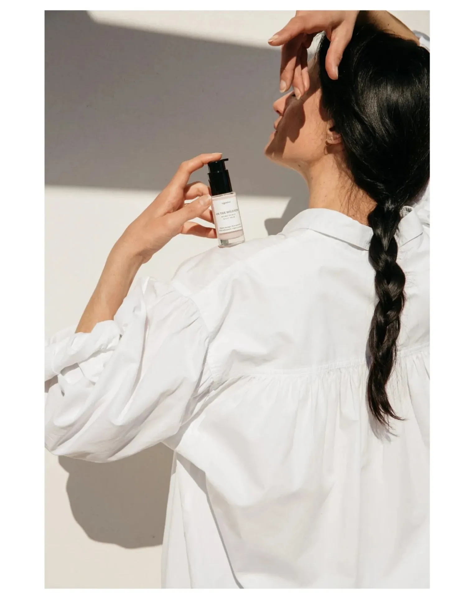 Retinol Like d’origine végétale, Acide hyaluronique d’origine végétale, Bourgeon de hêtre, Sève de bouleau, Eau de rose, Huile de prune, Huile d’amande douceFormule 100% naturelle, Sans conservateurs, Vegan
