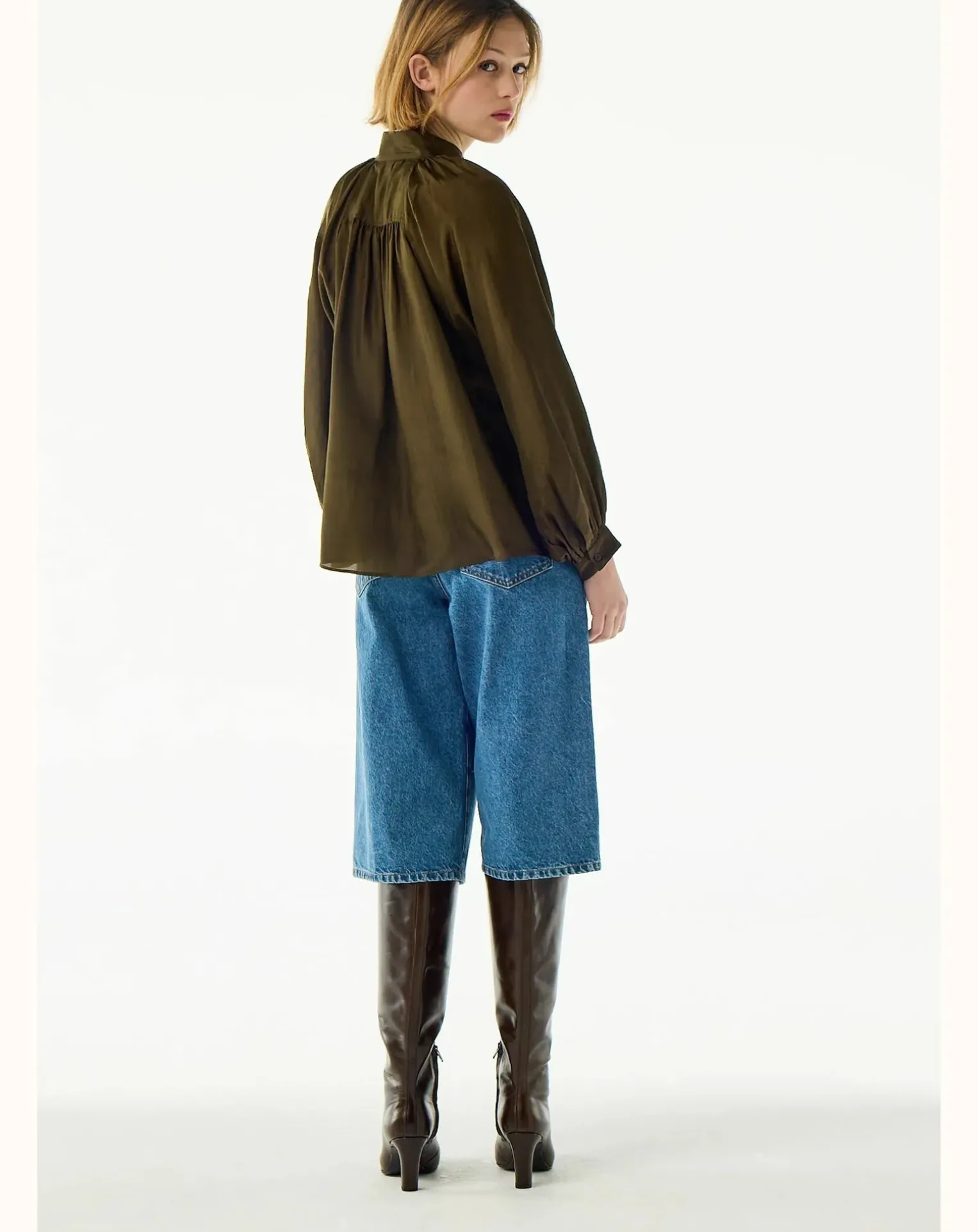 - – Blouse en soie- Coupe ample- Manches raglans- Col haut avec boutonnage tout du long