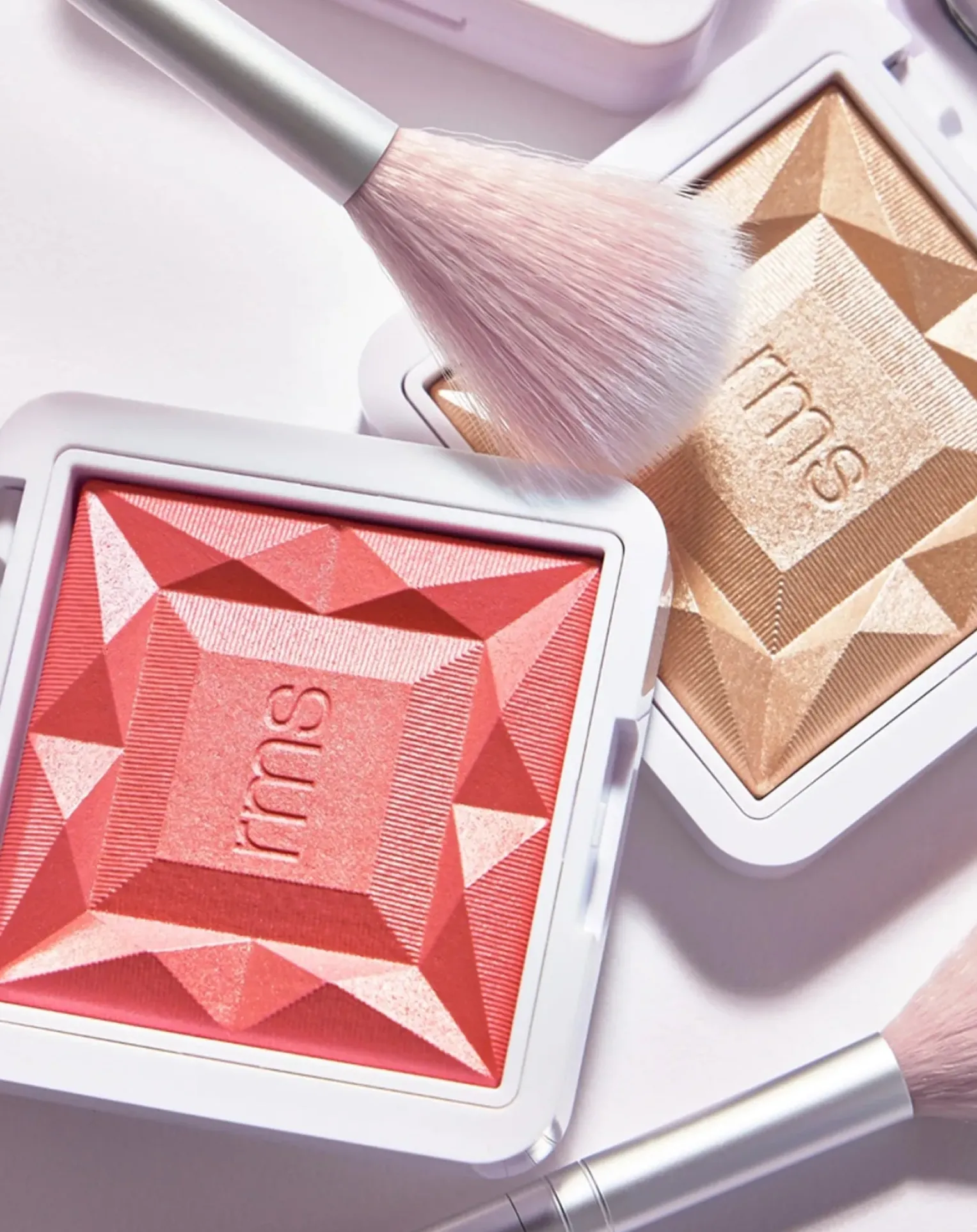 - Un pinceau en éventail pour surligner la poudre et la couleur transparente (une nouvelle version de notre pinceau en éventail original, redessiné avec des poils de chèvre luxueux).