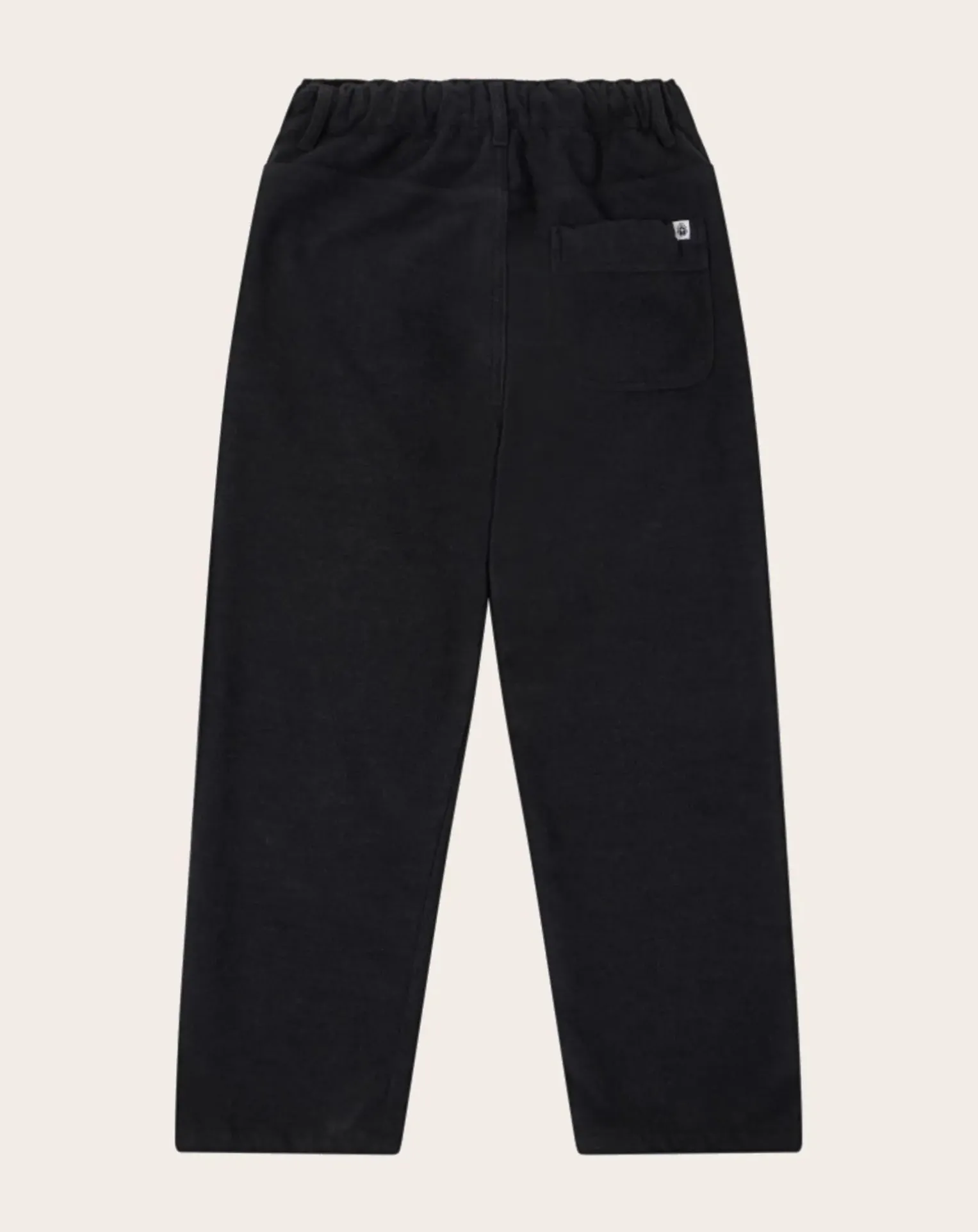 - – 83 % polyester | 15 % viscose | 2 % élasthanne- Coupe décontractée- Jambe légèrement fuselée- Taille élastiquée à l’arrière- 2 poches plaquées à l’avant et 1 à l’arrière- Coutures ton sur ton- Braguette zippée