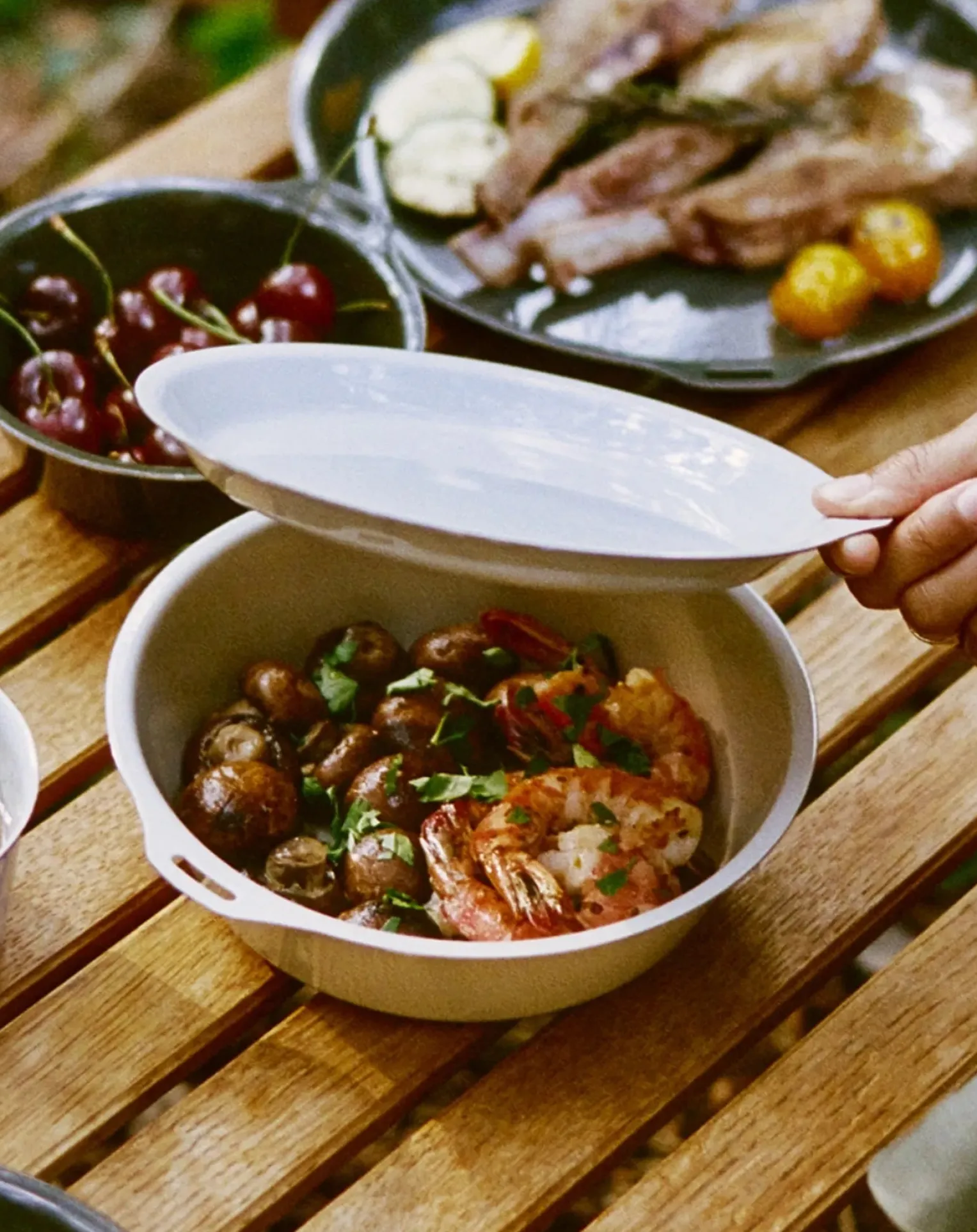 - Avec son ouverture basse et large, elle est de bonne taille pour les soupes. Le bord fin est lisse et confortable sur la bouche, ce qui permet de l’utiliser non seulement à l’extérieur, mais aussi à l’intérieur. La fente permet de la suspendre à des crochets pour faciliter le séchage. Contrairement à la vaisselle en émail typique dont les bords sont recourbés, le design empêche l’eau de s’accumuler, ce qui accélère le séchage.