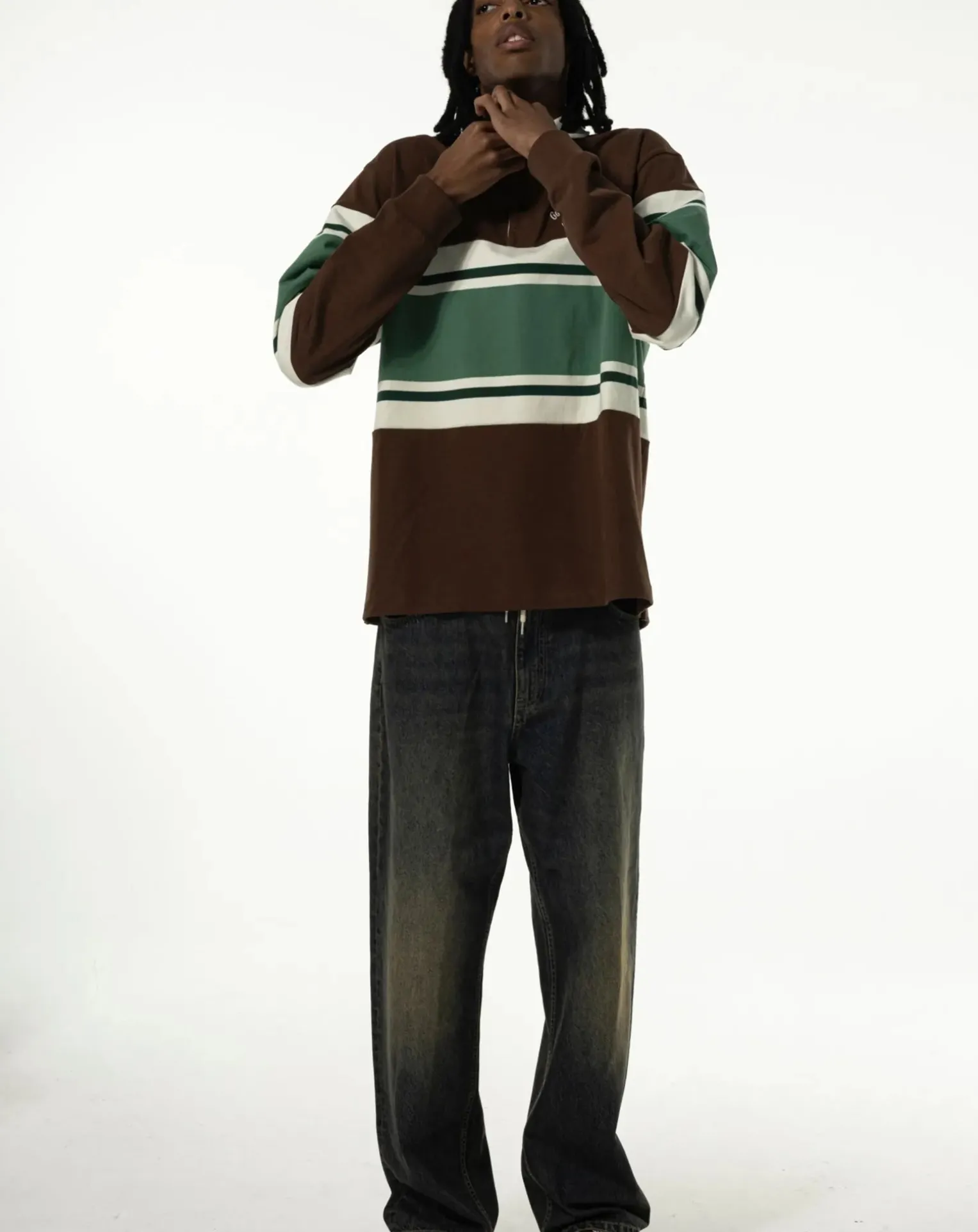 - Polo épais en coton biologique, coupe décontractée. Logo en relief à l’avant, col rond et rayures horizontales.