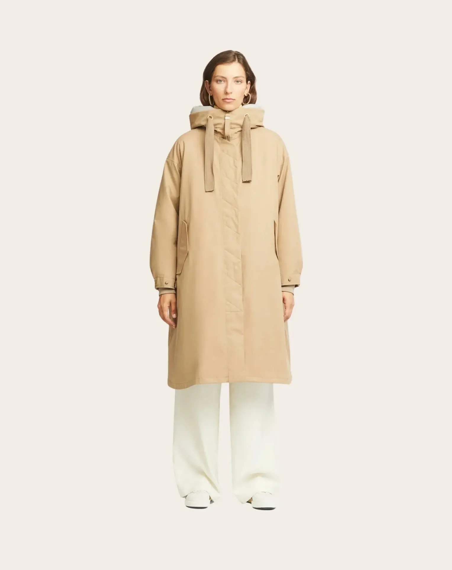 - Si vous ne deviez choisir qu’un seul manteau pour les saisons à venir, ce serait celui-ci ! Il réunit polyvalence, fonctionnalité et élégance intemporelle dans un design soigneusement pensé. Sa veste intérieure amovible garnie de PrimaLoft® en fait un véritable tout-terrain : légère en été, chaude en hiver – et idéale pour toutes les saisons intermédiaires. Sa silhouette féminine et minimaliste, dotée d’un ourlet arrondi, peut être portée ouverte en ligne A moderne ou ajustée à l’aide d’un cordon au dos. Malgré son esthétique épurée, ce modèle surprend par sa fonctionnalité complète : imperméable, coupe-vent, respirant – et pourtant si doux qu’on le sent à peine. Disponible en deux matières au caractère affirmé : le ‘Soft Canvas’, doux et durable, inspiré de la nature, et le tissu technique ‘Nano Shell’, élégant et soyeux au toucher. Toute l’année, un seul manteau – résolument polyvalent.
