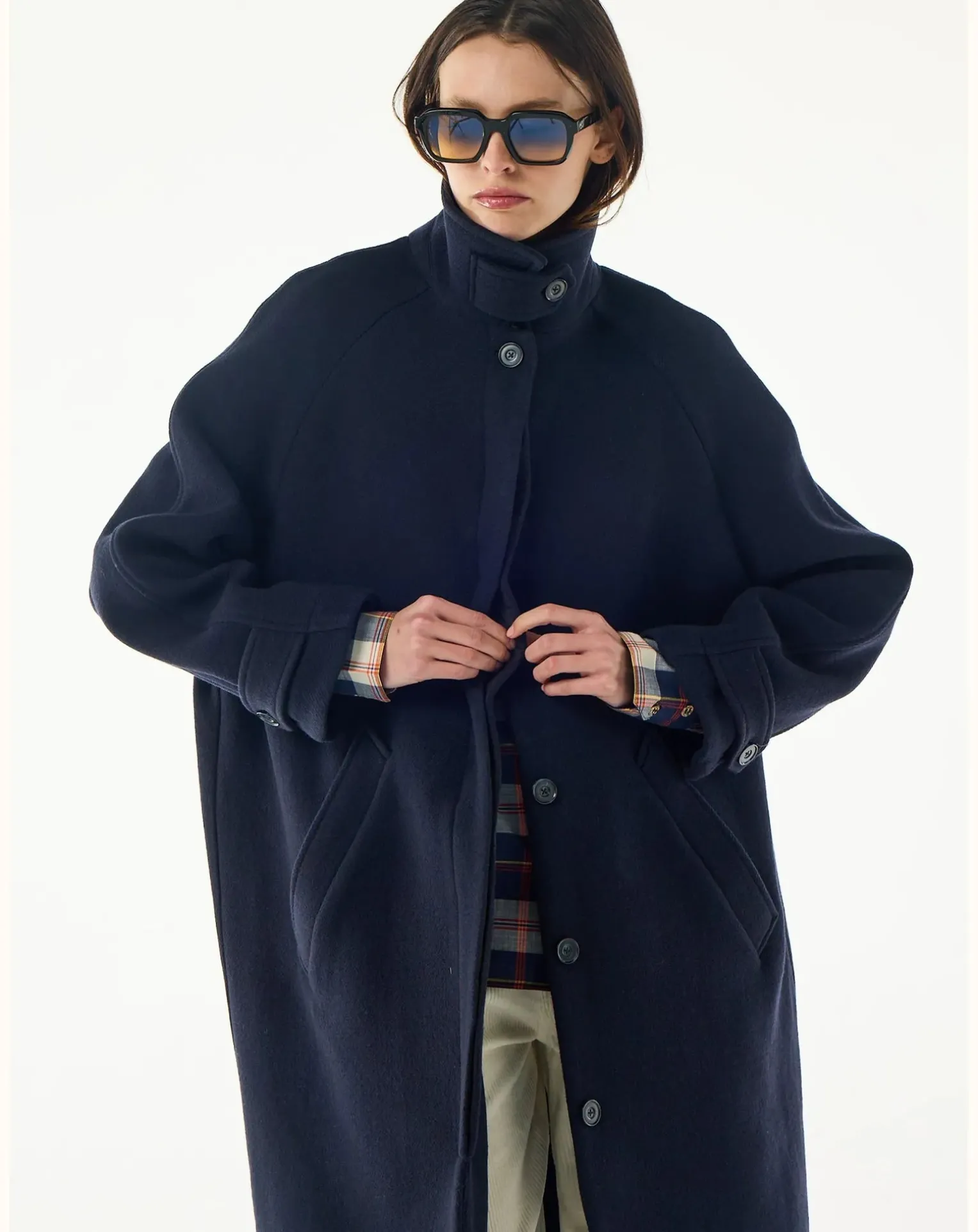 - – Manteau long en laine- Manches longues- Boutonnage caché sur le devant- Poches devant