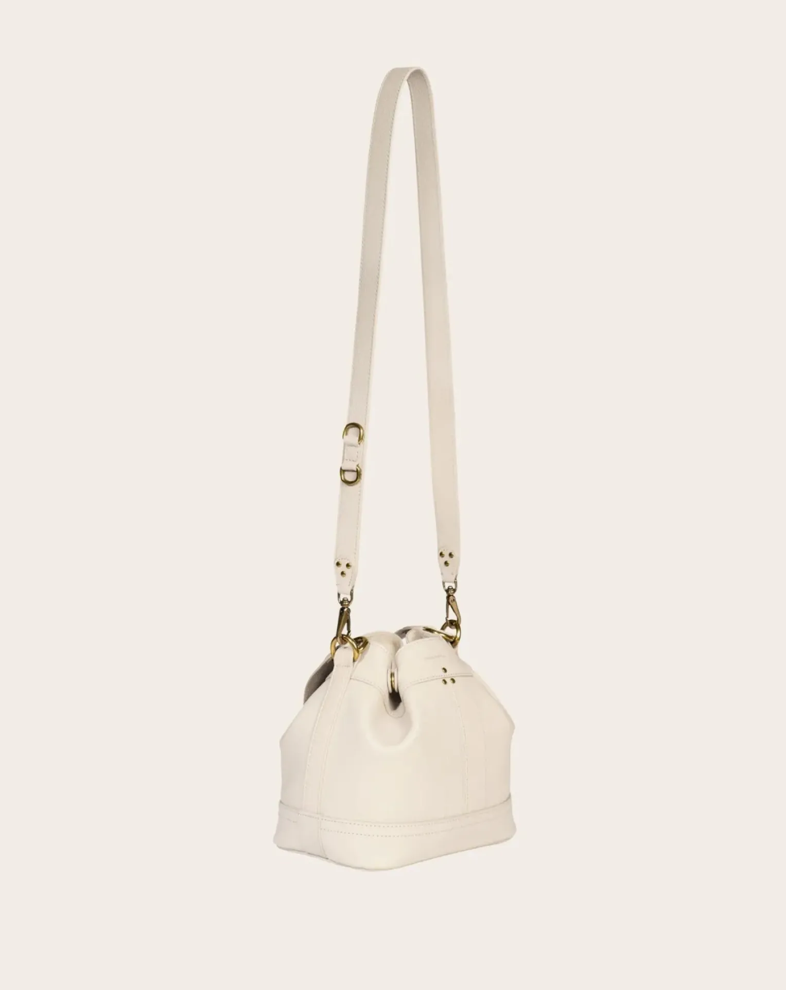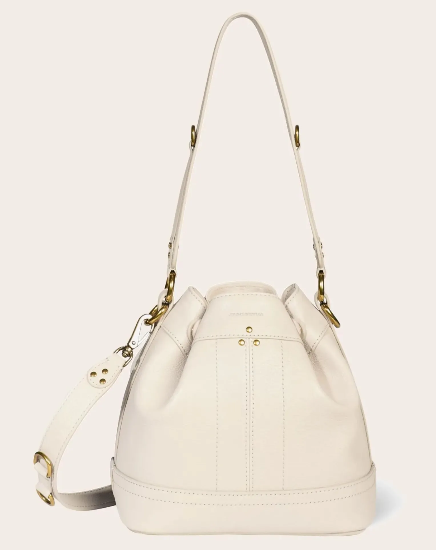 - Sac seau, Fermeture ajustable par pression. Porté épaule ou croisé. Bandoulière en cuir amovible