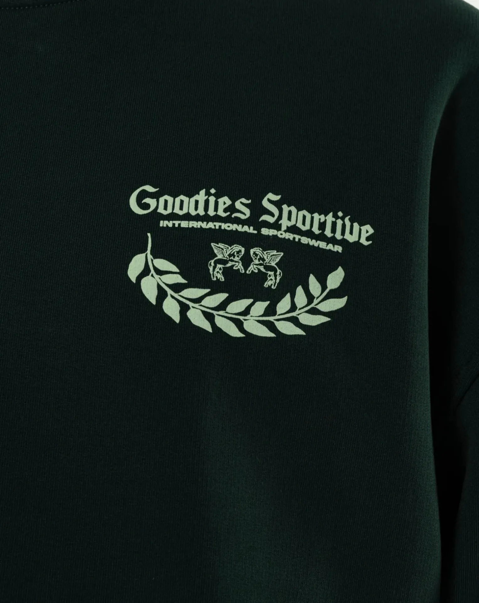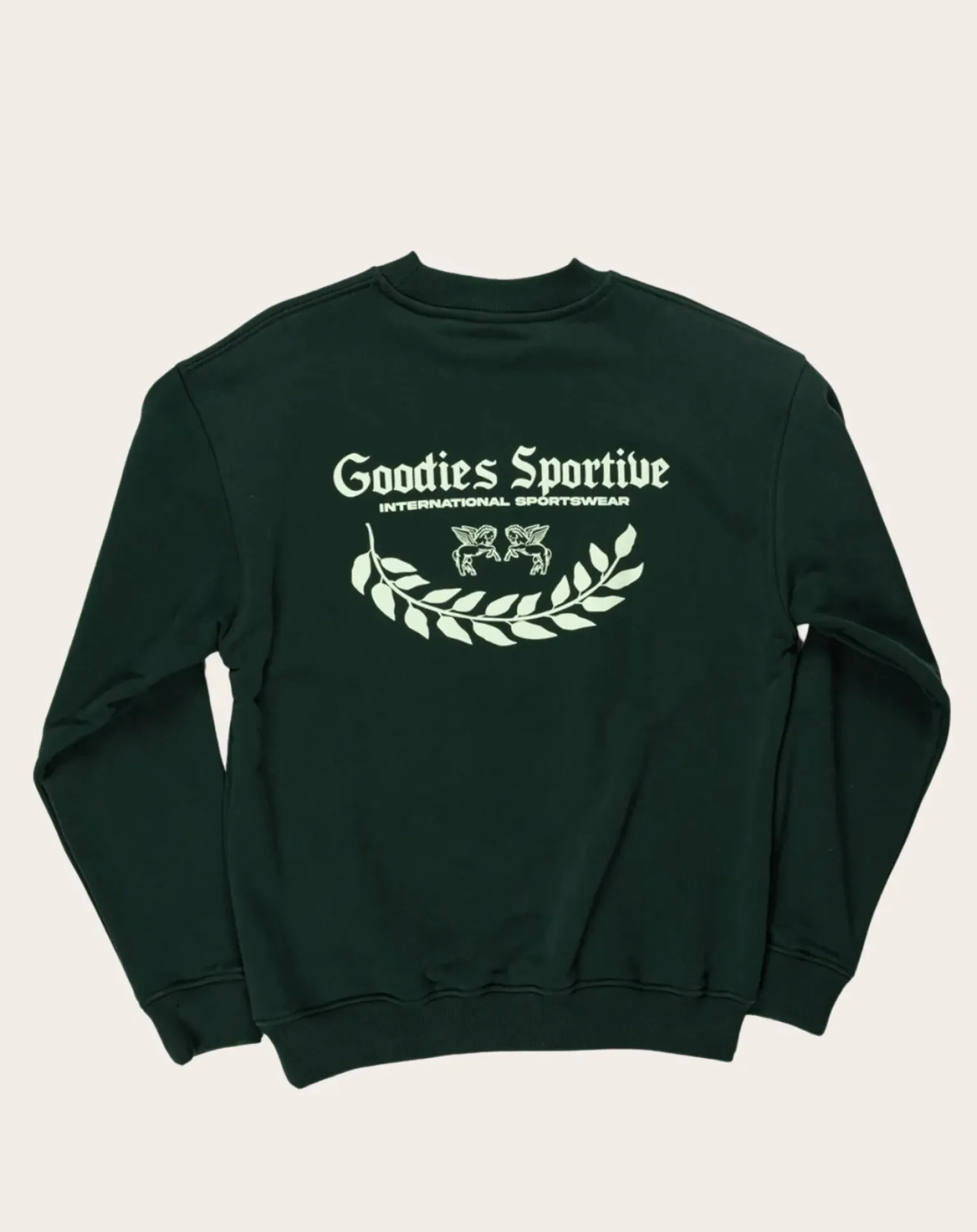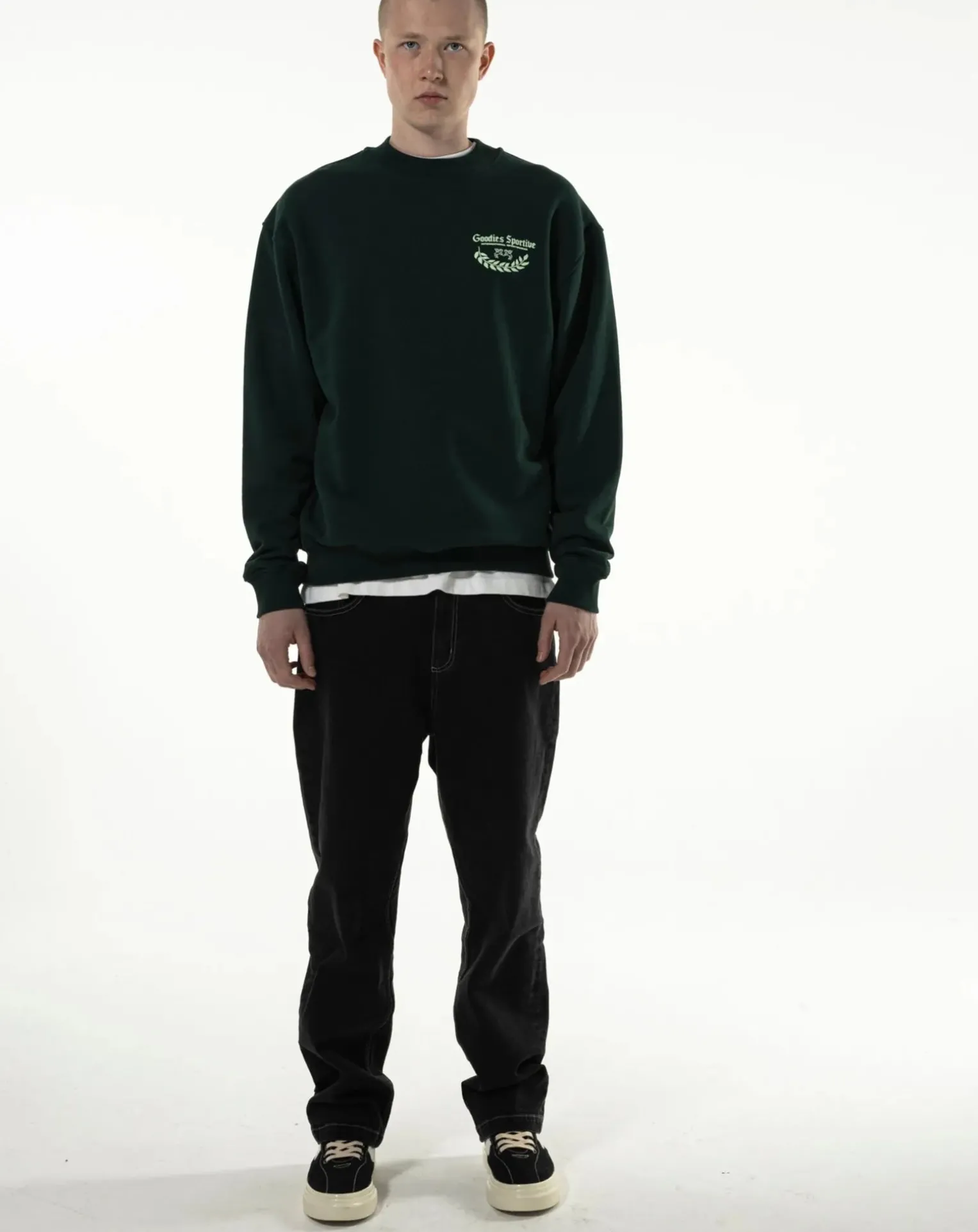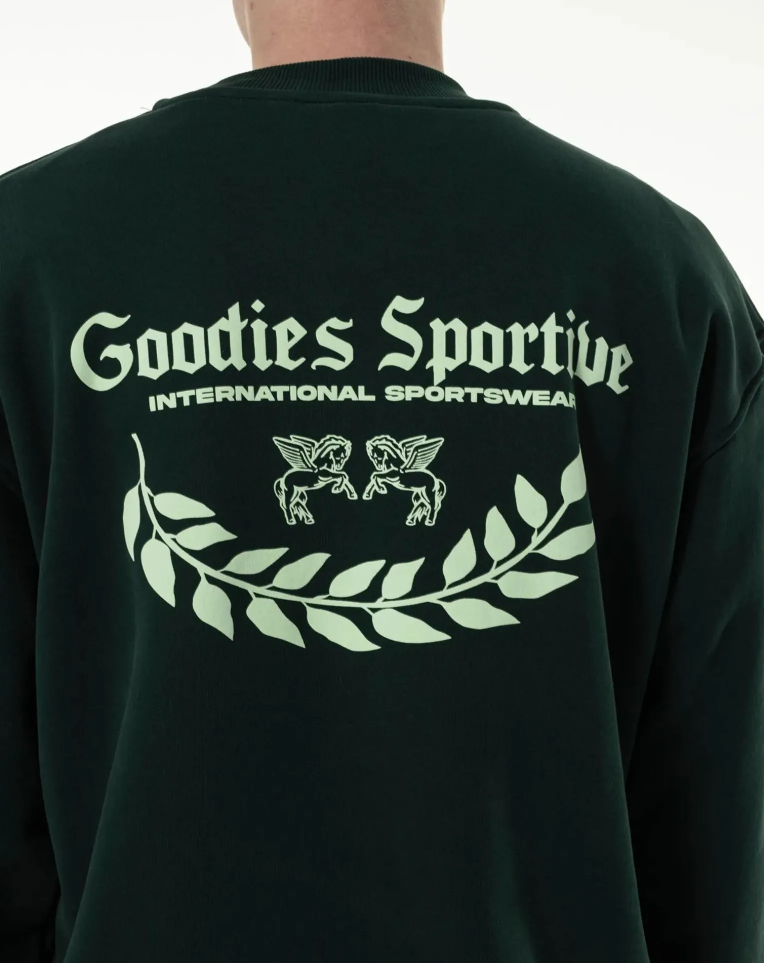 - Sweat col rond vert, coupe carrée. Logo à l’avant et à l’arrière, col rond.