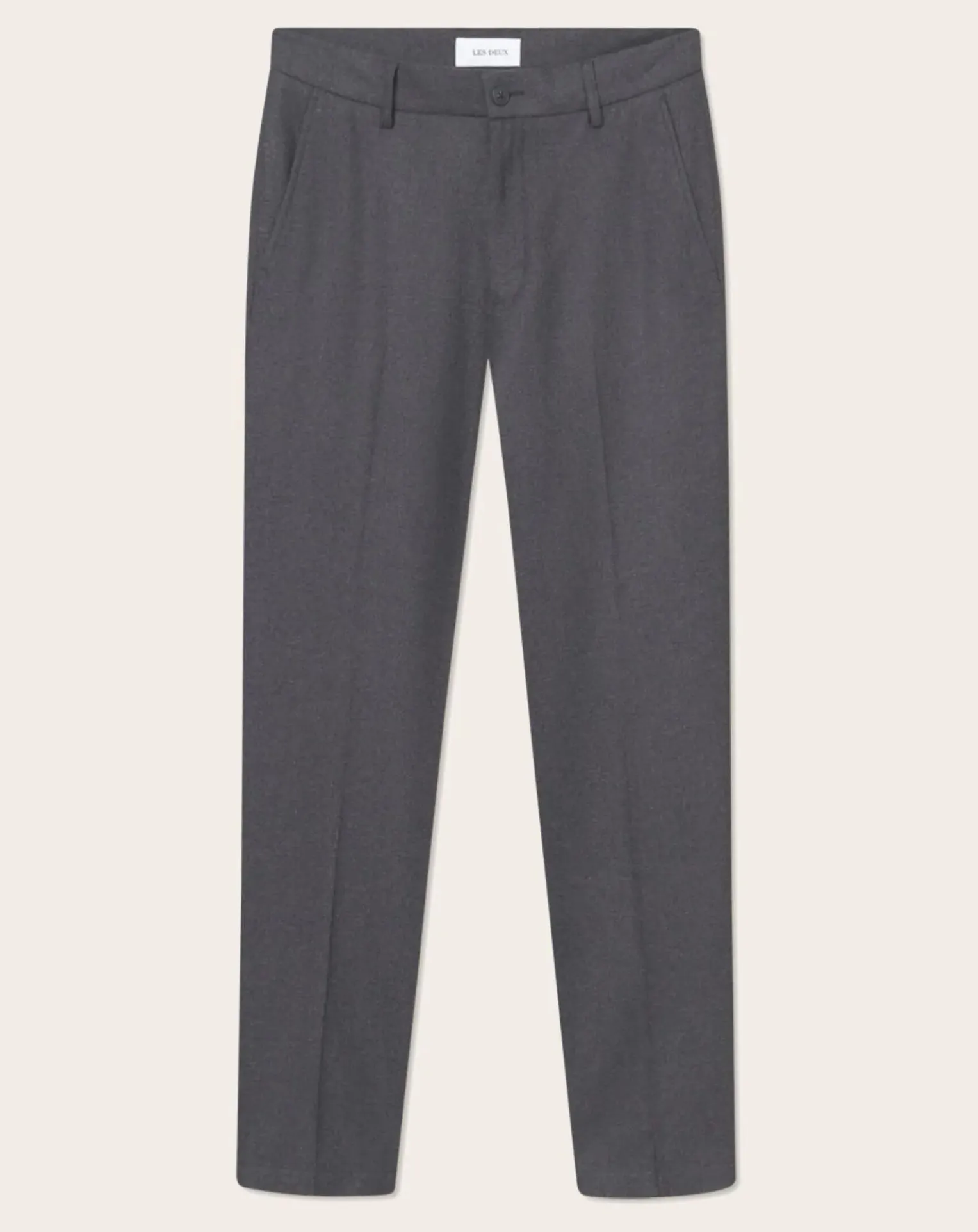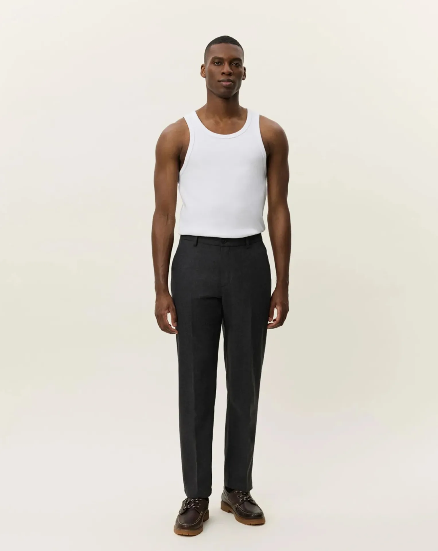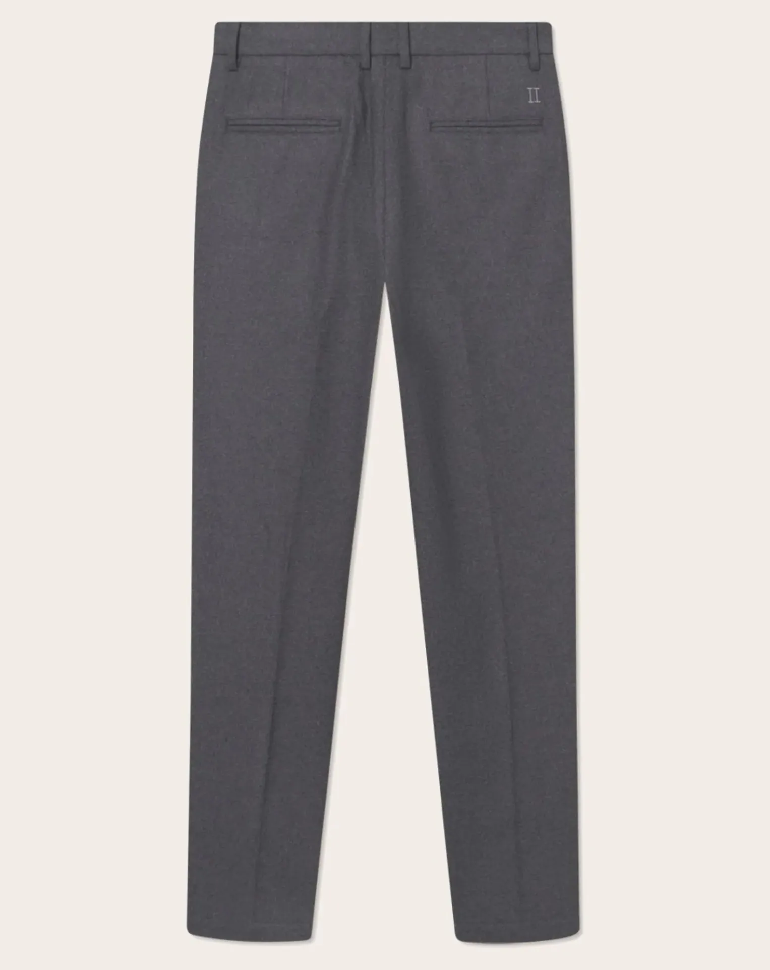 - Pantalon de costume classique en laine mélangée brossée avec fermeture formelle et plis de pression.