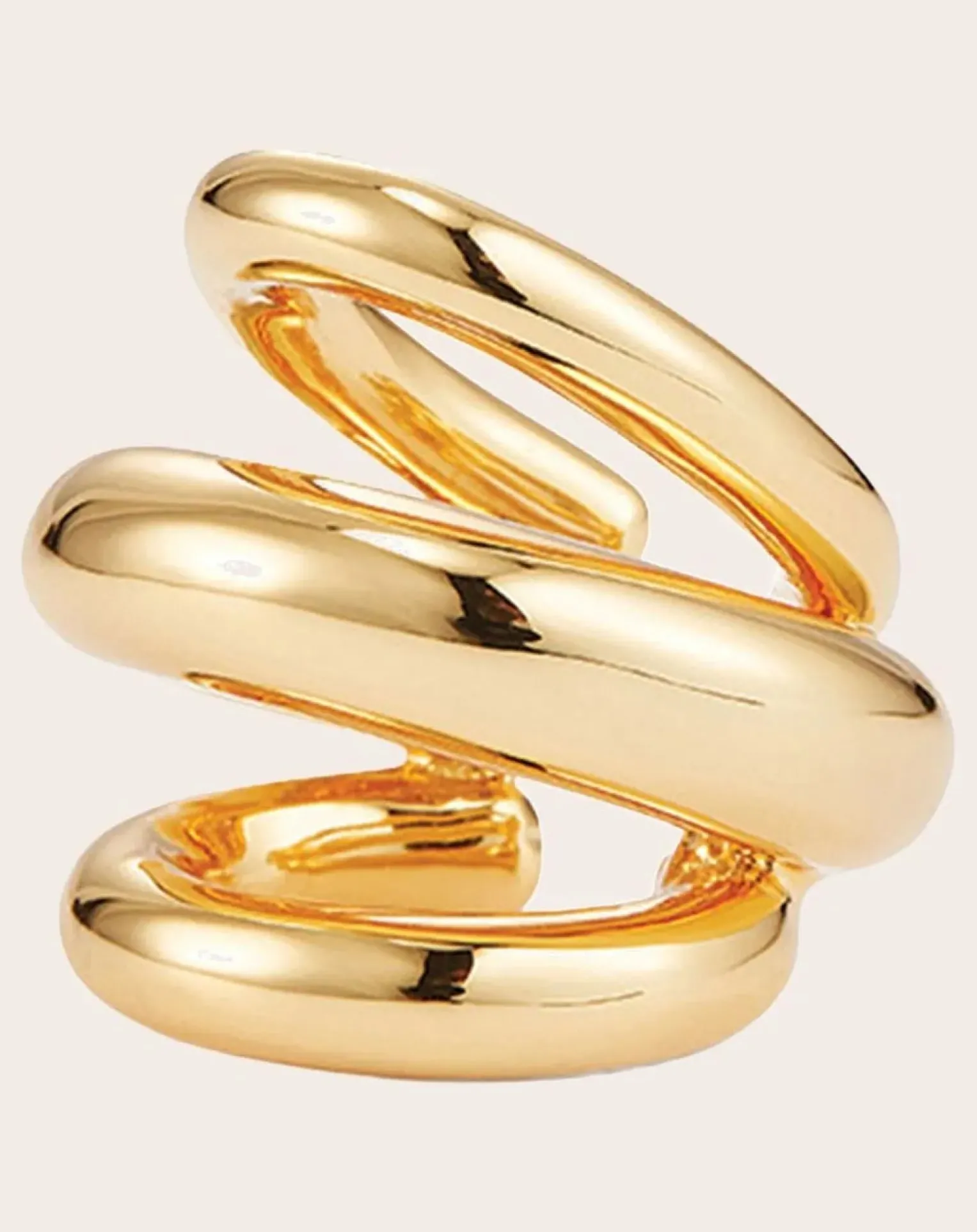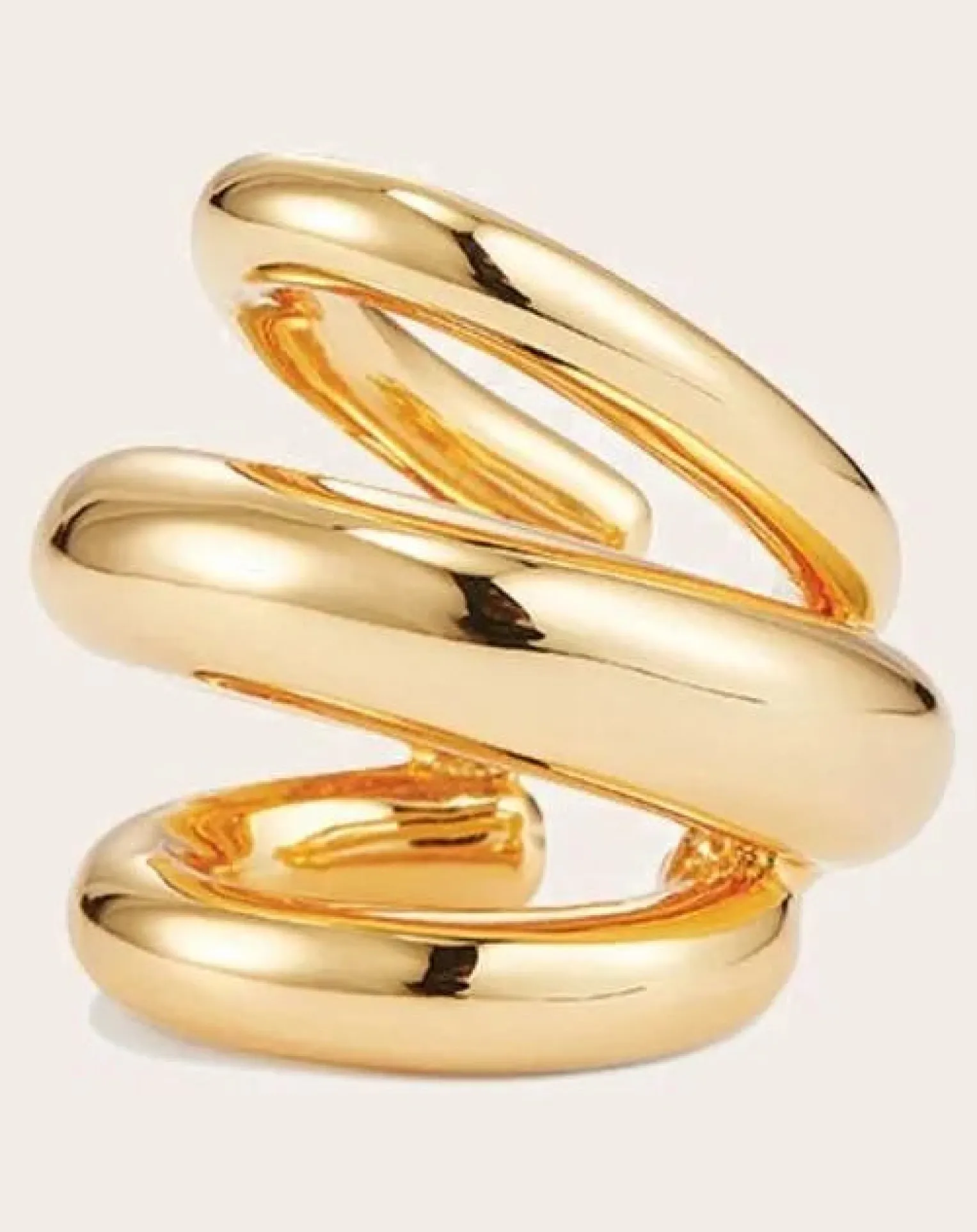 - Une manchette d’oreille aux extrémités arrondies qui ne passe pas inaperçue. Le Triple Ear Cuff de Tome est solide, vous ne pourrez donc pas le serrer en place. Pour le porter, placez-le sur la partie la plus fine de votre oreille, en poussant sur le bord pour qu’il s’accroche à l’intérieur. Une fois qu’il est bien fixé, remuez-le pour l’ajuster en place. Finition en or poli.