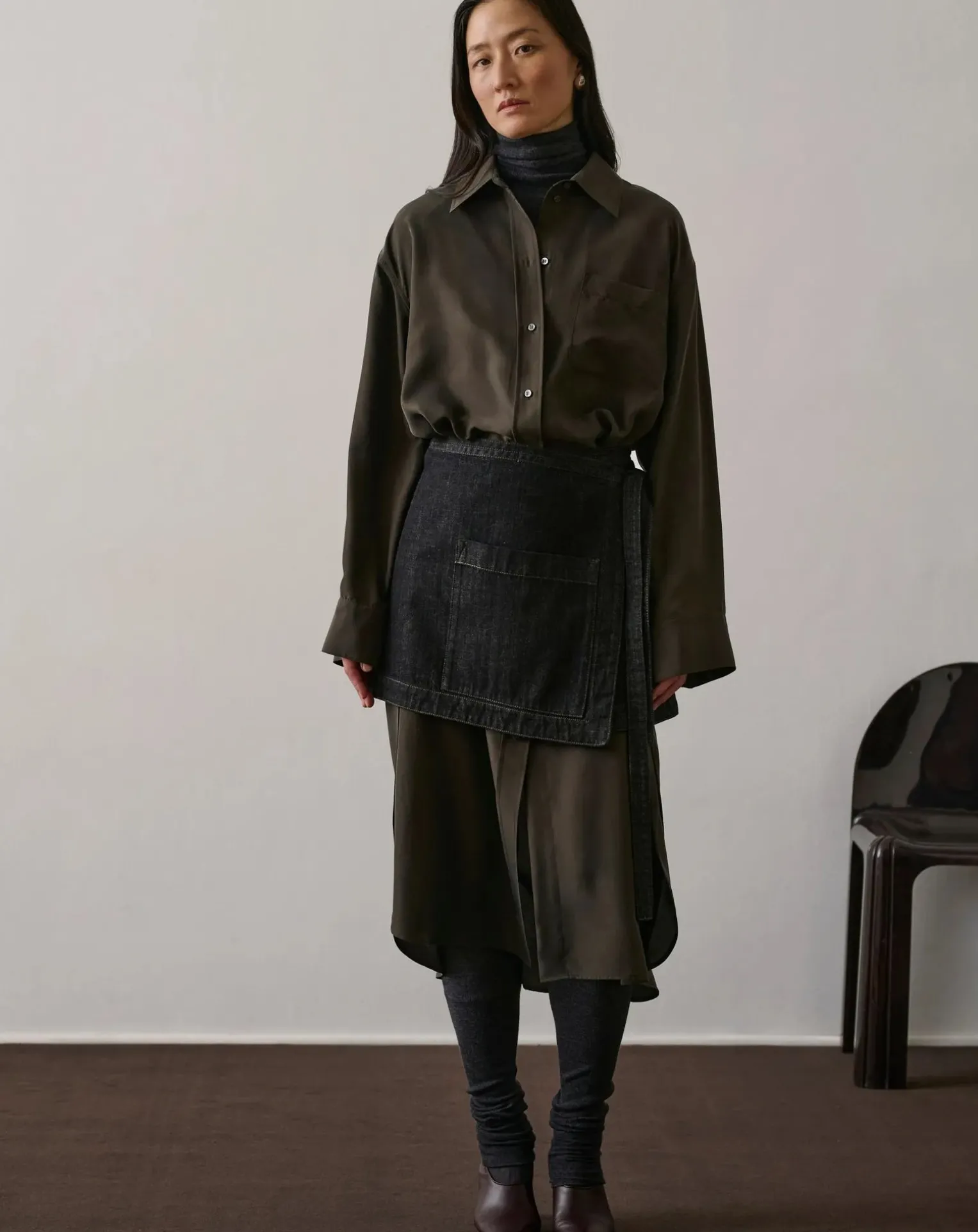 - Robe en soie lavée,Forme chemise, coupe oversize,Longueur cheville,Col chemise,Patte de boutonnahe
