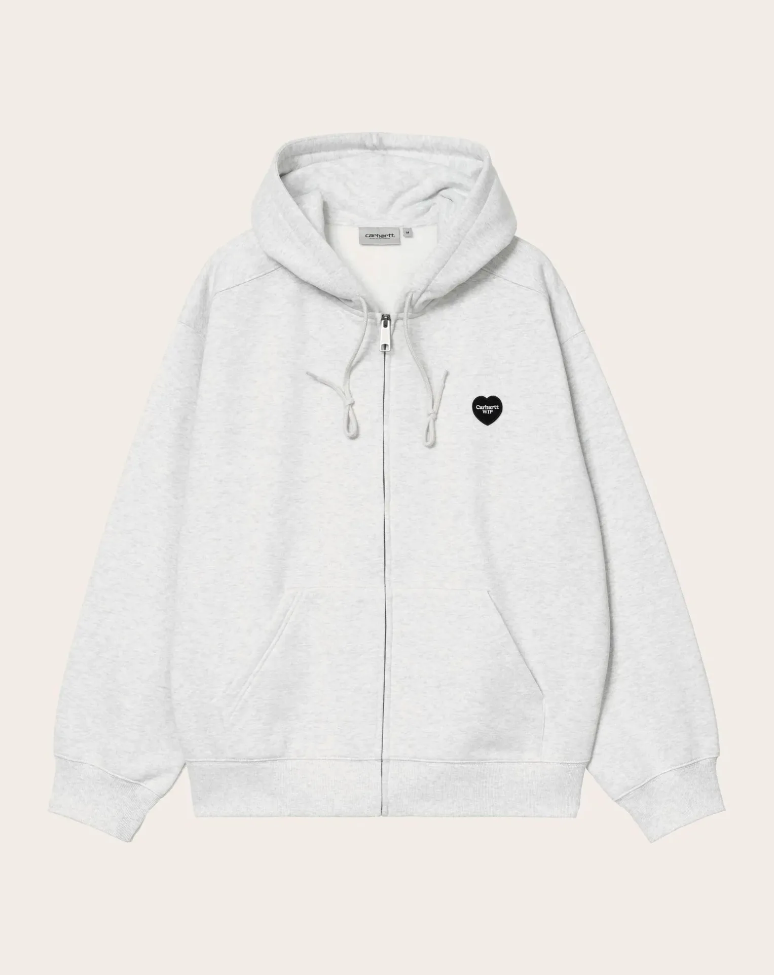 - Le sweat jacket à capuche ‘Heart II Hartt’ est confectionné en jersey de polyester-coton épais qui a été brossé. De coupe balloon, légèrement plus ample et boxy, il présente des emmanchures basses et des extrémités côtelées. Il affiche le patch ‘Heart’ sur la poitrine et un imprimé graphique au dos.