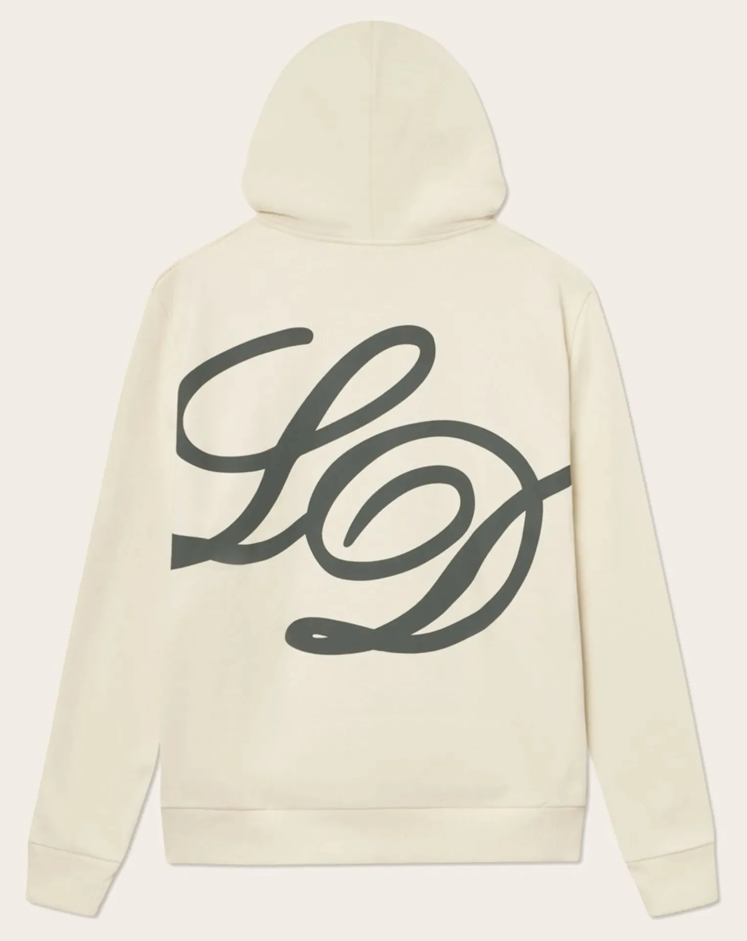 - Sweat à capuche ample et ajusté en tissu éponge texturé avec un grand logo LD en cursive imprimé au dos.