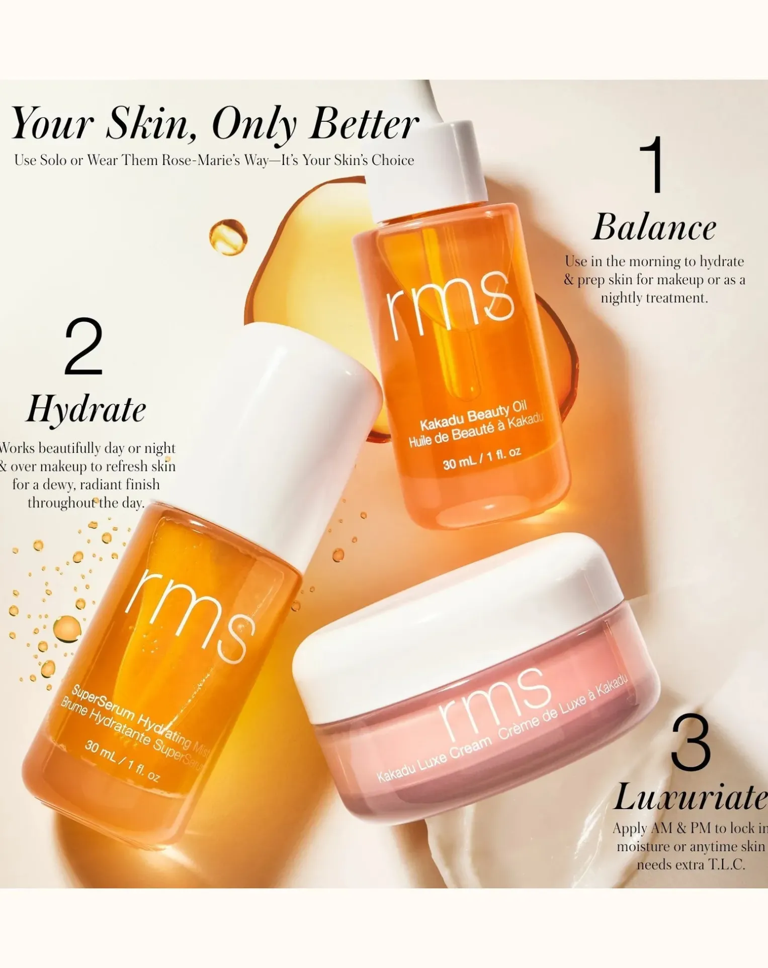 - Équilibre la peau, améliore sa texture, prépare le maquillage et offre une hydratation riche et éclatante. L’huile de beauté originale que vous connaissez et aimez a été revigorée par certains des ingrédients innovants les plus récents de Rose-Marie, qui aiment la peau, comme le superfruit Kakadu Plum, l’une des formes les plus naturelles et les plus stables de vitamine C. Grâce à ce mélange léger mais super-concentré d’huiles et d’herbes adaptogènes exclusives, la peau bénéficie d’une riche défense antioxydante, d’une hydratation tout au long de la journée et d’une luminosité éclatante. Certifié Kind to Biome® : Les produits marqués KIND TO BIOME® sont des produits scientifiques qui prennent en compte la santé du microbiome de la peau. Ils répondent à des normes élevées d’évaluation scientifique de l’impact sur le microbiome de la peau. La marque KIND TO BIOME® reconnaît les produits qui sont doux pour le microbiome cutané, et soutient les allégations les plus pertinentes relatives au microbiome cutané disponibles aujourd’hui, à savoir : – respectueux du microbiome cutané – doux pour le microbiome cutané – Kind to Biome – neutre pour le microbiome cutané – maintient un microbiome cutané sain – ne perturbe pas le microbiome cutané – n’interfère pas avec le microbiome cutané.