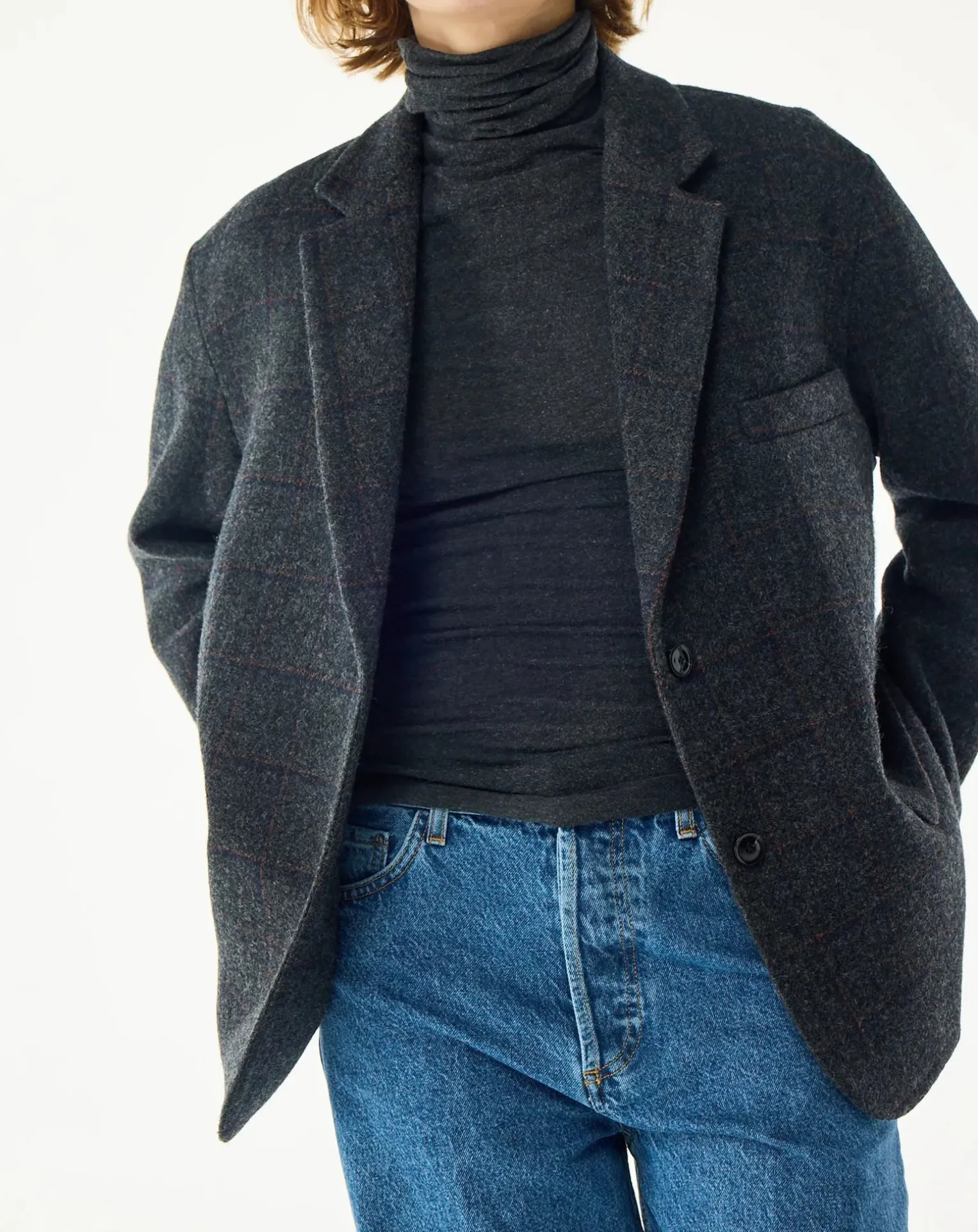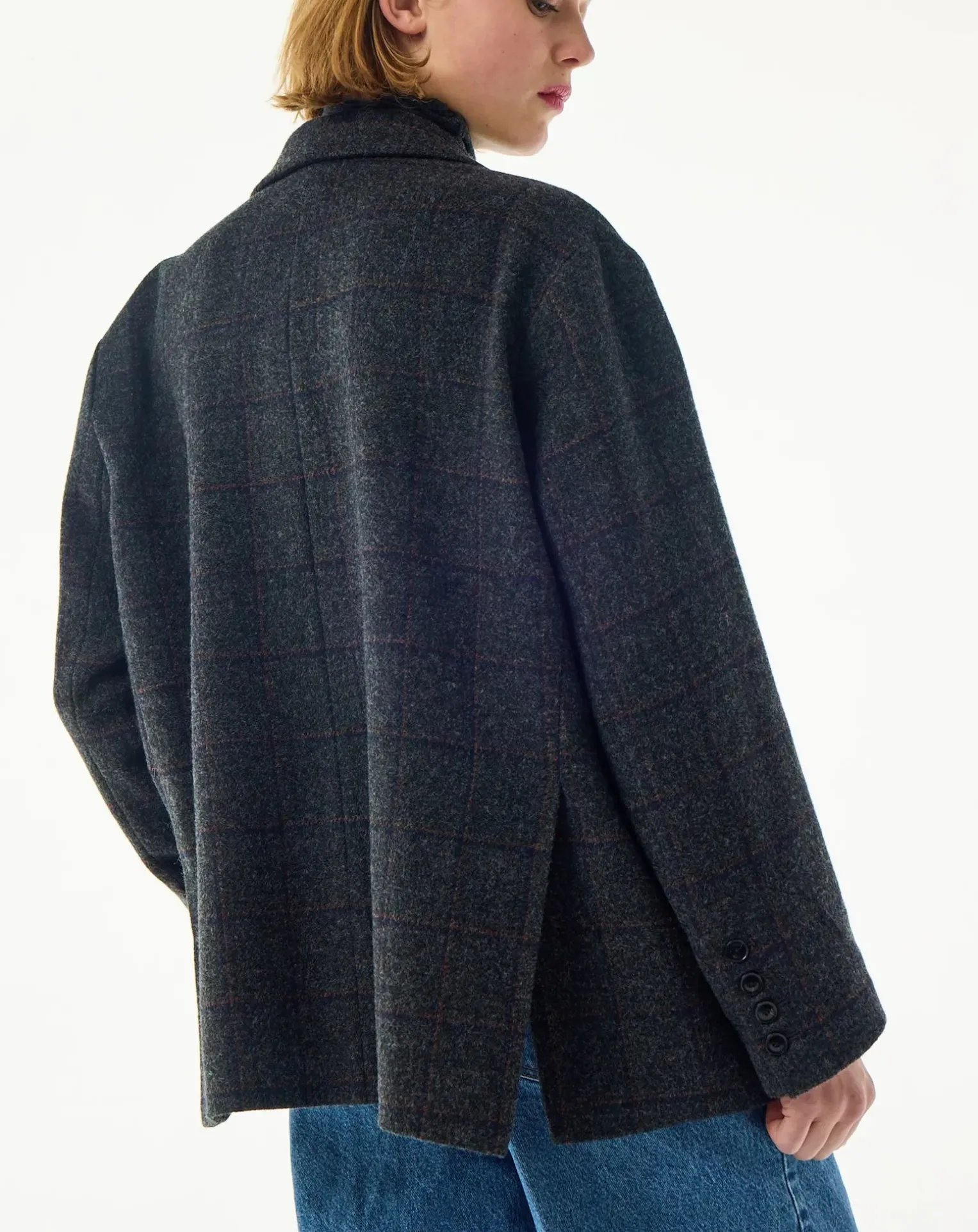 - – Veste blazer oversize en laine vierge- Manches longues- Poches à rabat- Poche poitrine- Poche intérieure- Fermeture par deux boutons