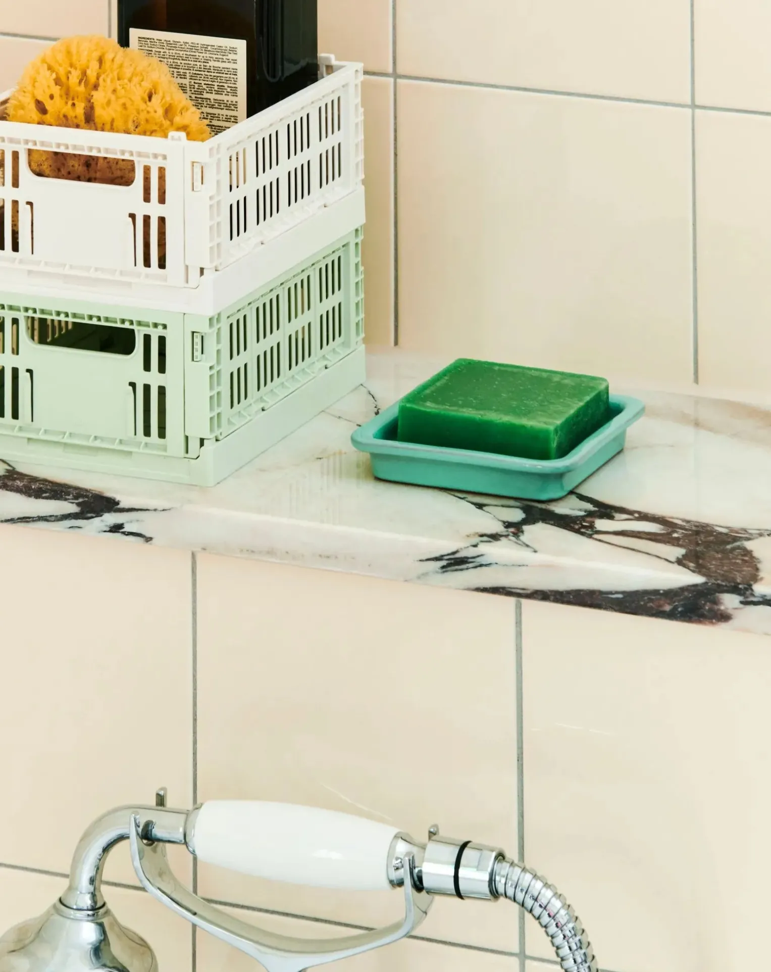 - Fabriqué en terre cuite avec une glaçure colorée, le porte-savon de HAY ajoute un aspect naturel et élégant à votre salle de bains. Sa forme carrée convient à la plupart des barres de savon et ses côtés surélevés empêchent les barres de savon de glisser. Disponible en différentes couleurs qui conviennent à la plupart des salles de bains.