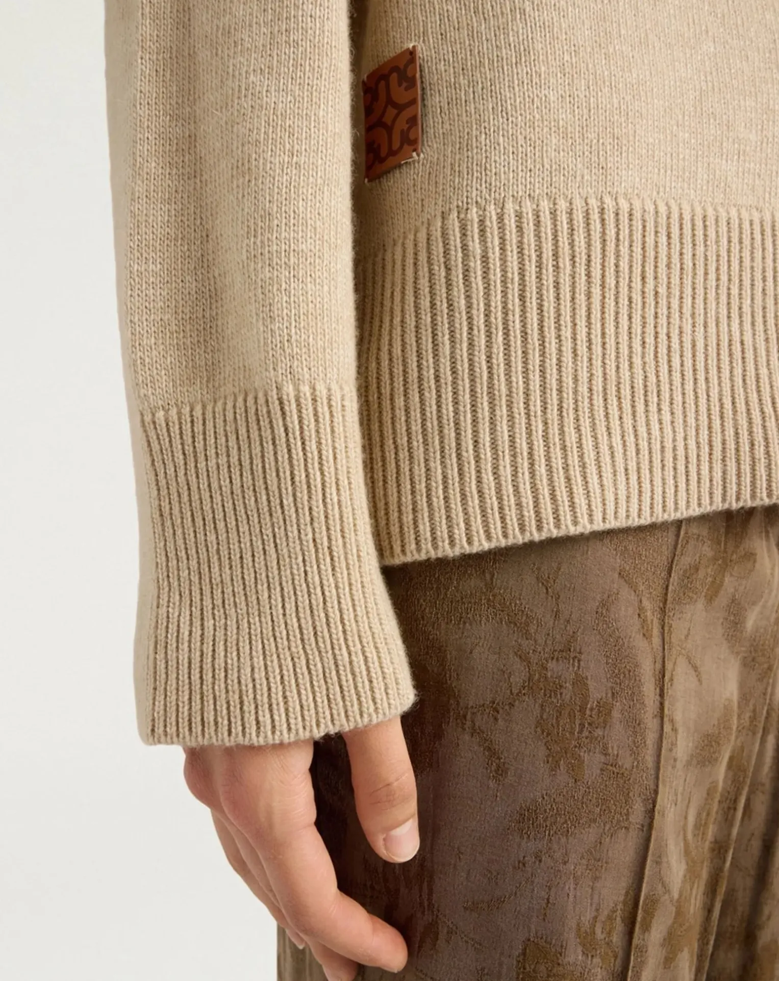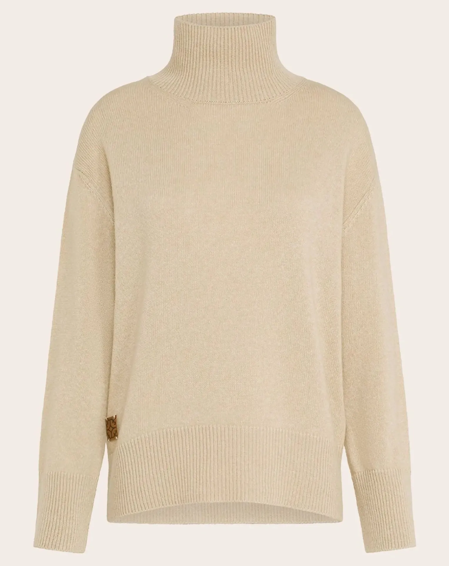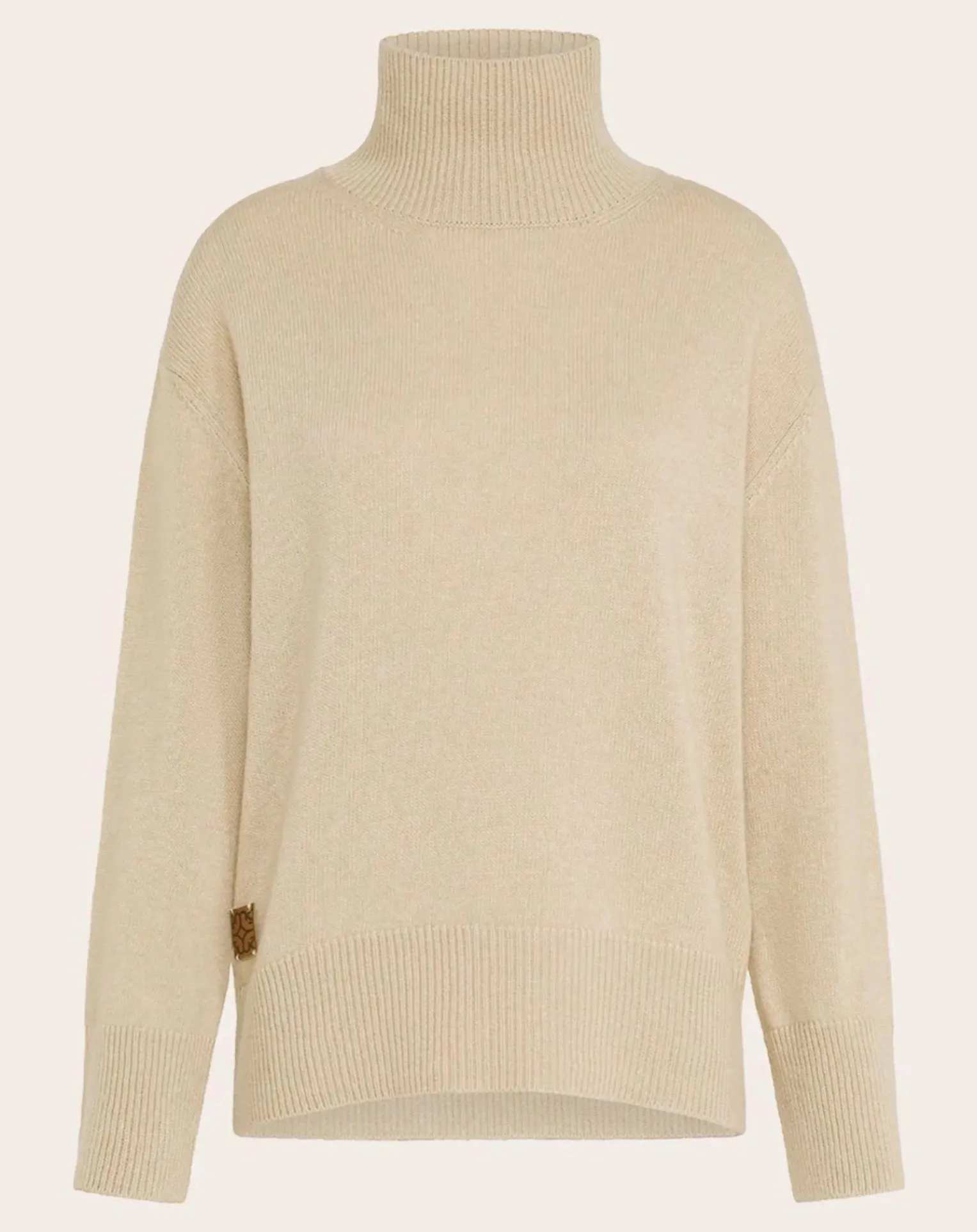 - Tricot oversize roulé en maille rasée de laine mélangée cachemire. Mailles tombantes apparentes. Made in Italy.
