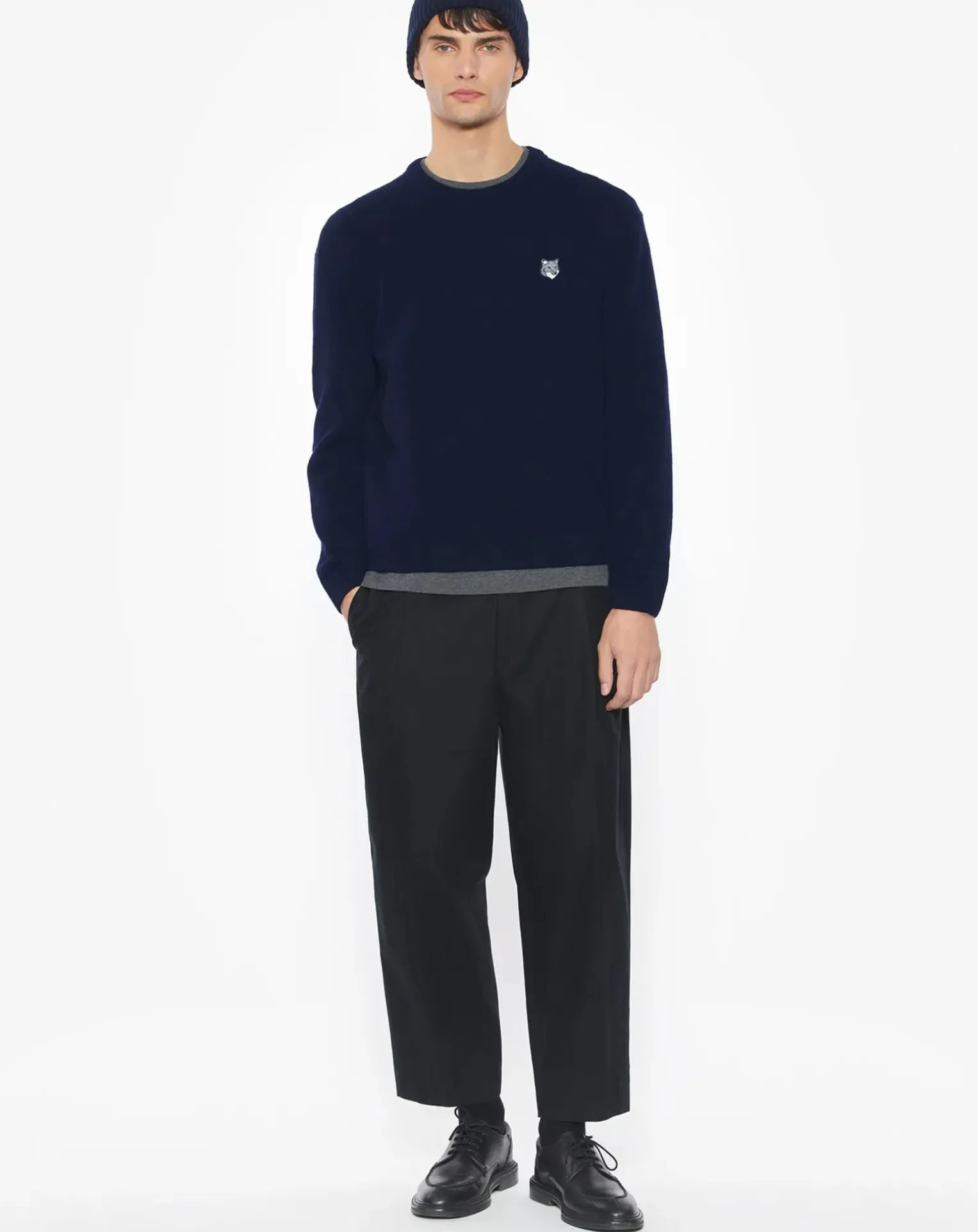 - Pull en laine d’agneau à manches longues. Coupe confort avec patch Grey Fox Head brodé.